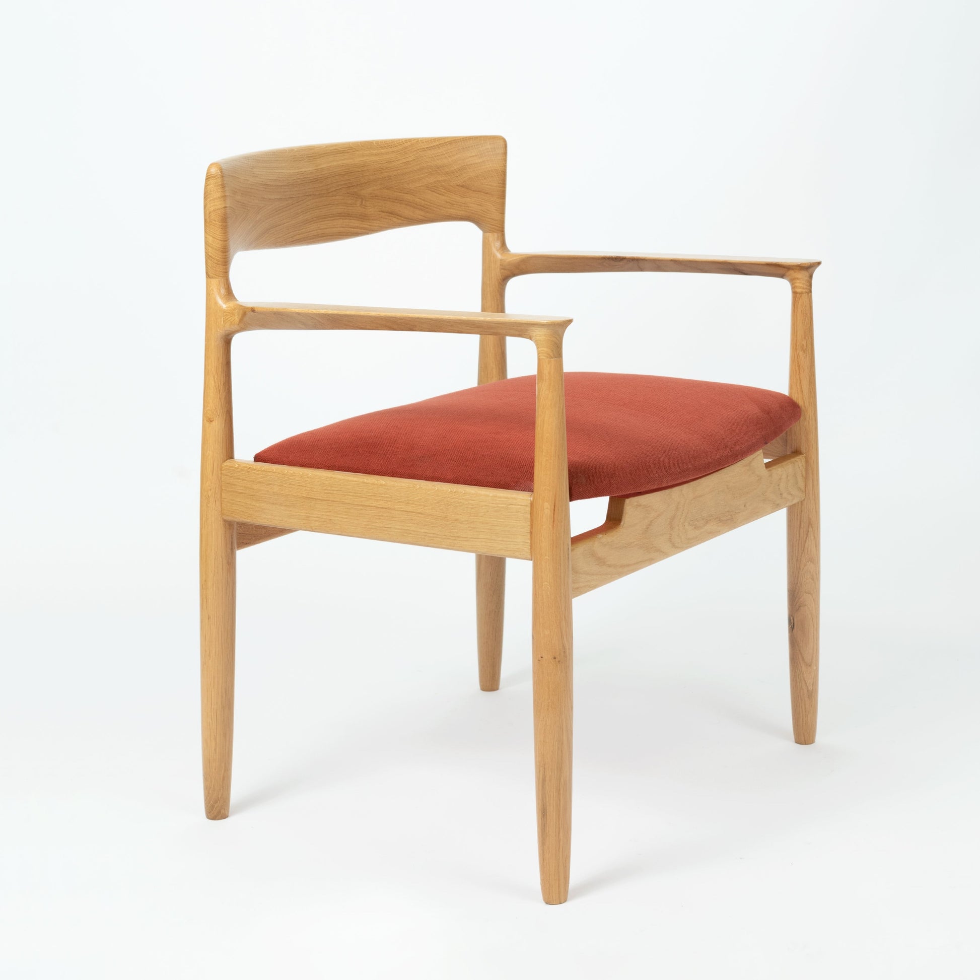 This chair in solid oak wood and upholstered seat evokes the design of the late 60s in a perfectly designed and high-quality piece.