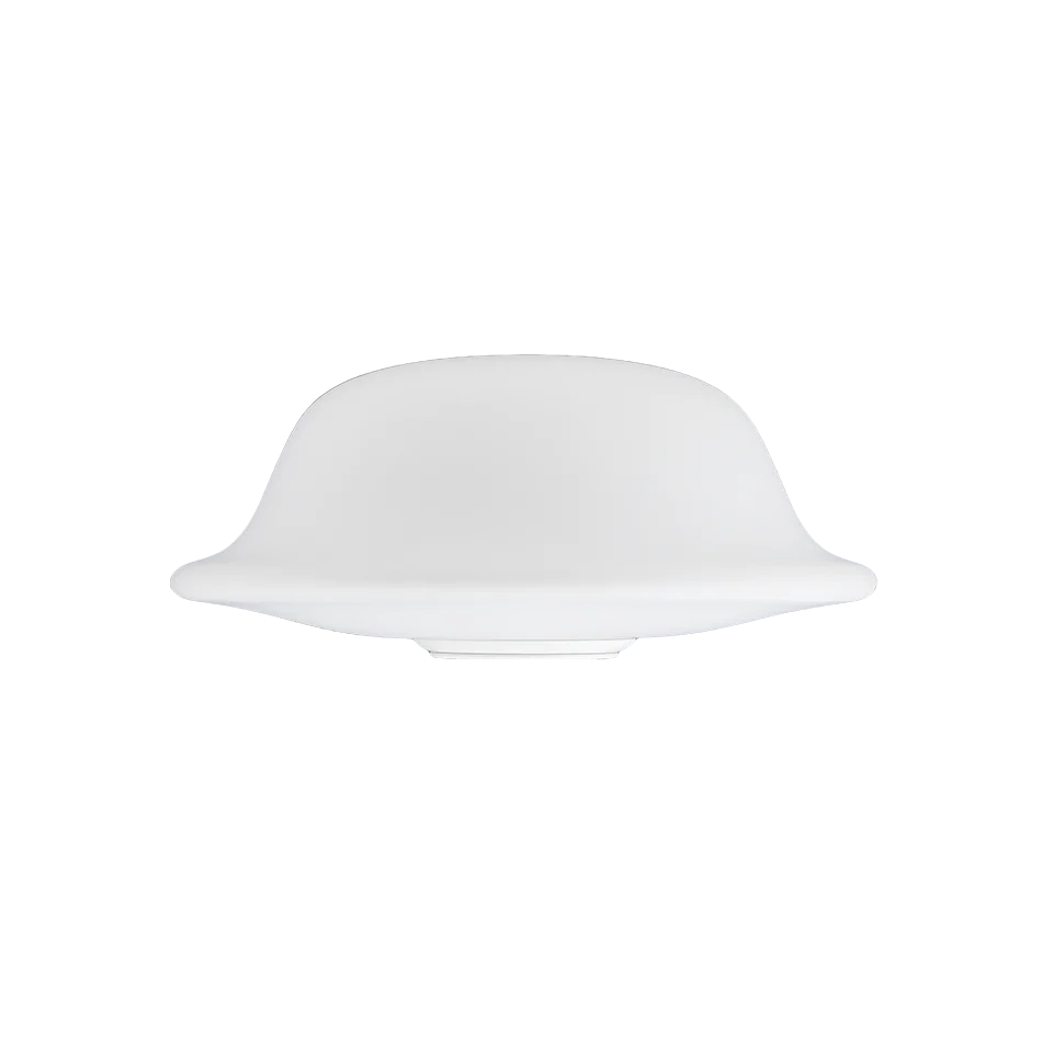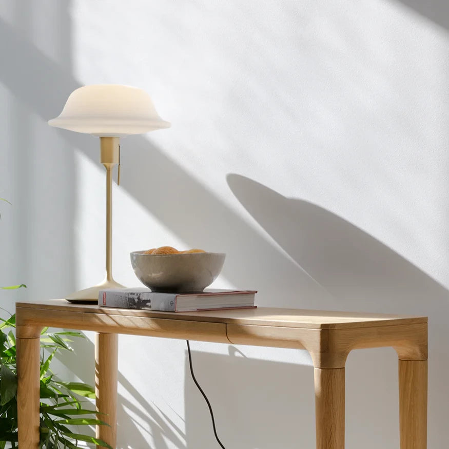 Lampshade made of opaline blown glass, milky white in color and brushed brass base.