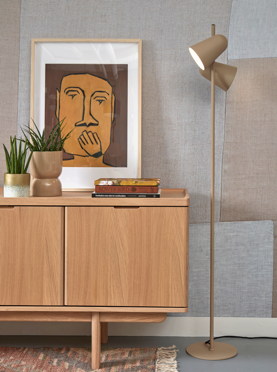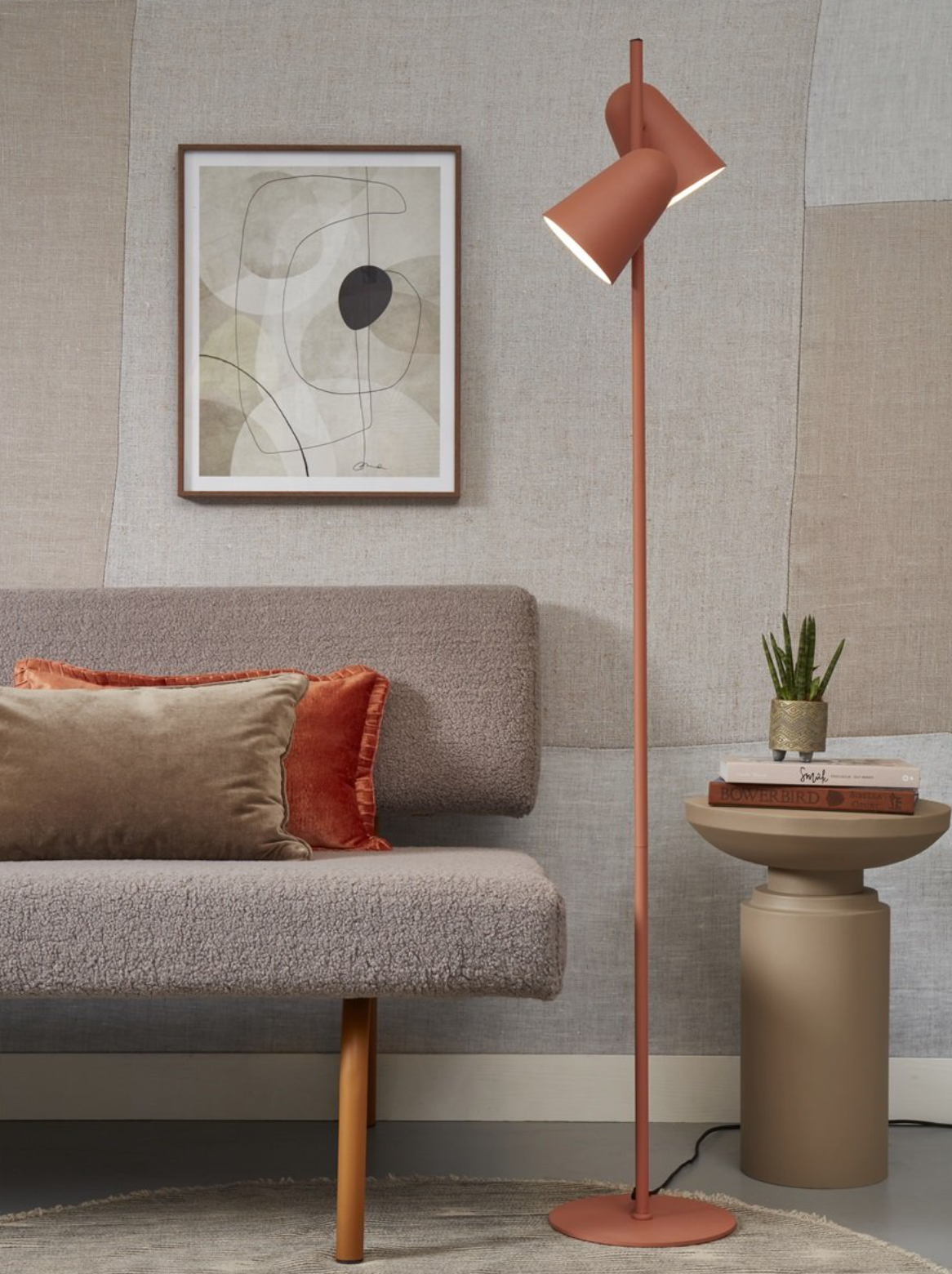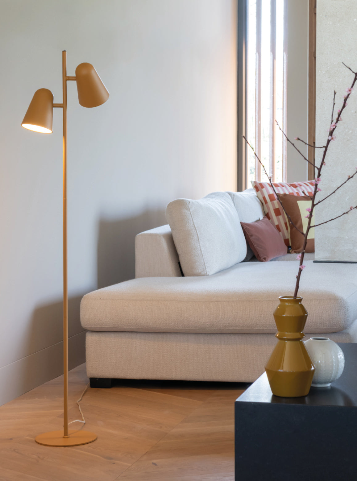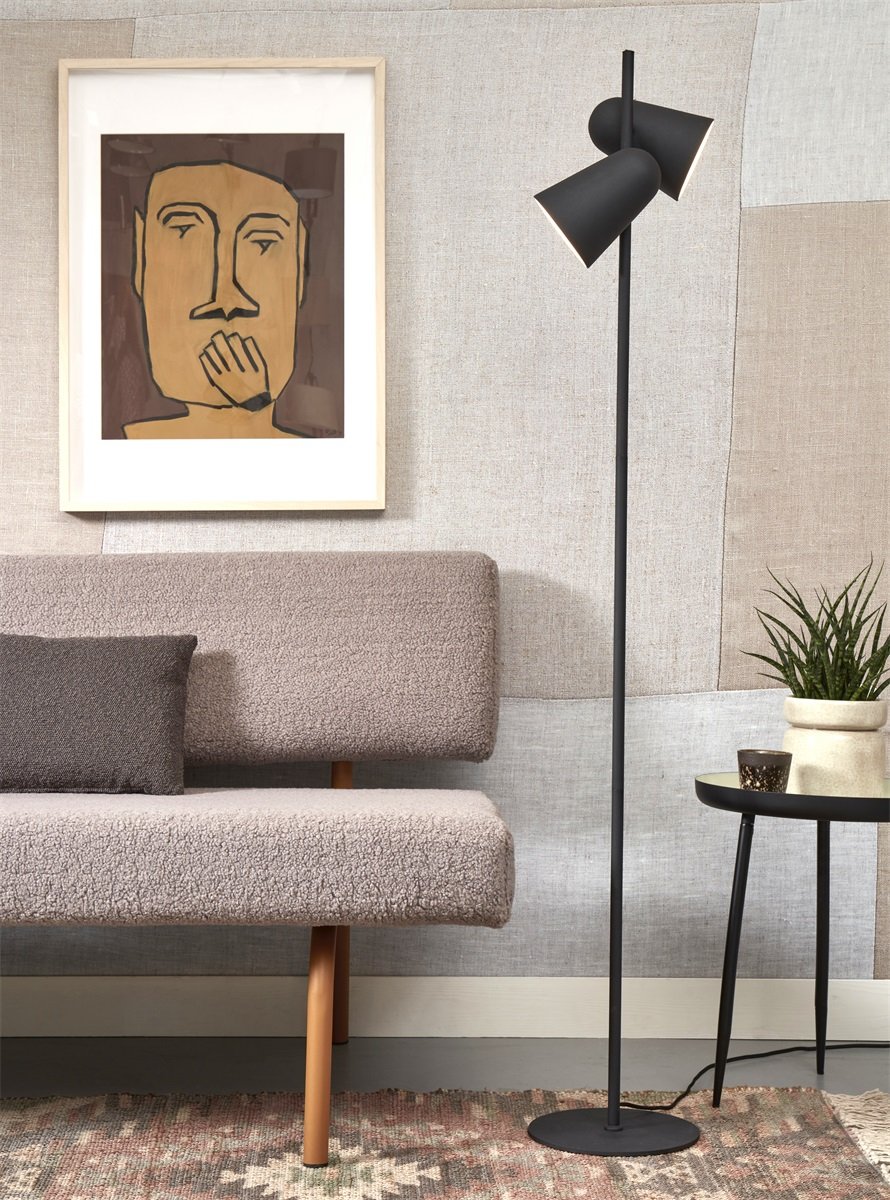 Illuminate a corner of your home with this floor lamp with a thermo-lacquered metal structure and a bell that allows you to direct the light.