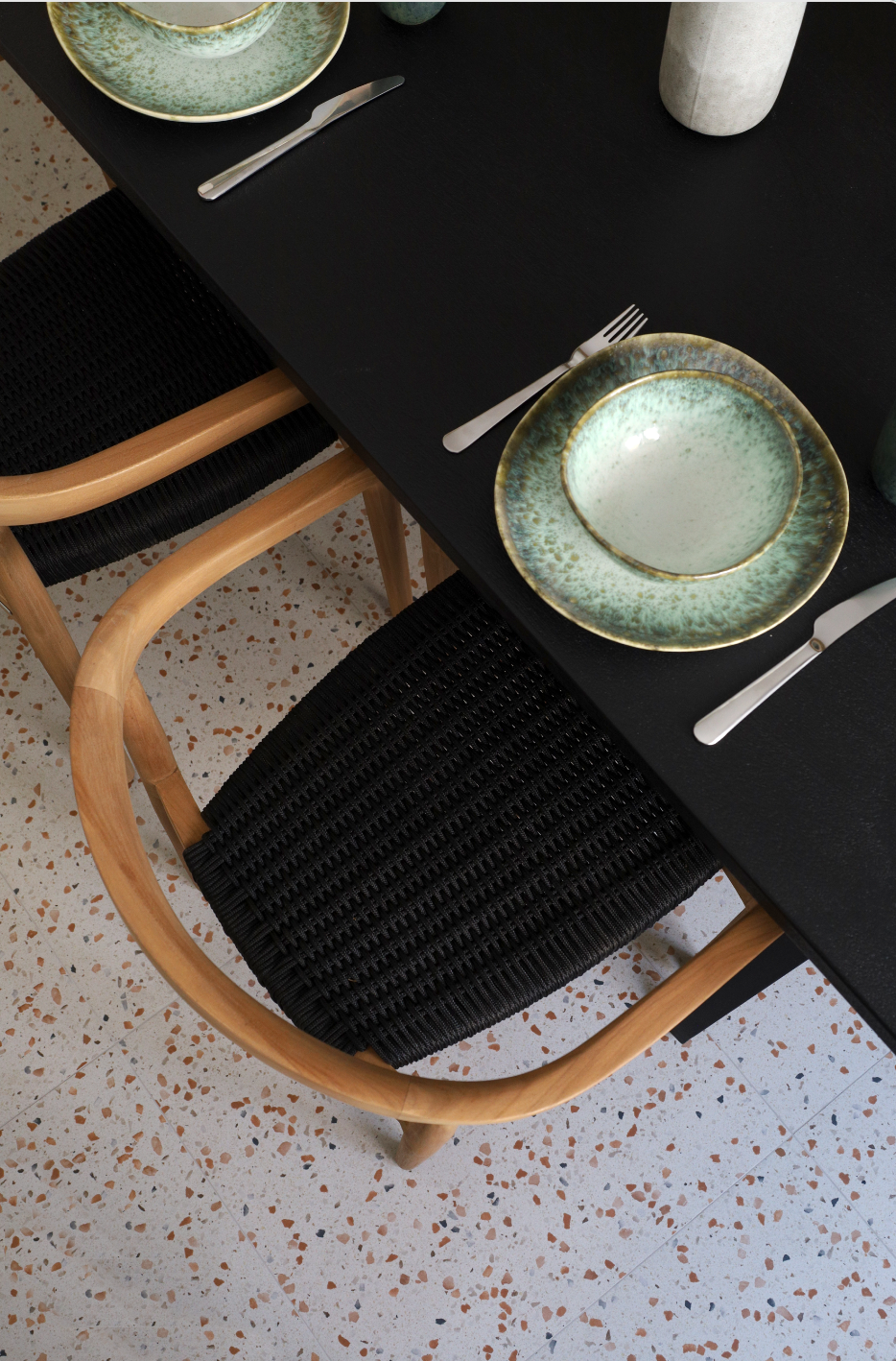 O sofá em forma de L foi totalmente personalizado e feito sob medida, para esta sala que tem uma área contida e que teve de ser muito bem aproveitada para criar ambos os ambientes. Tivemos muita preocupação em escolher peças com materiais duráveis e resistentes, desde a mesa de jantar em madeira maciça de cantos redondos e pernas em ferro e cadeiras trabalhadas