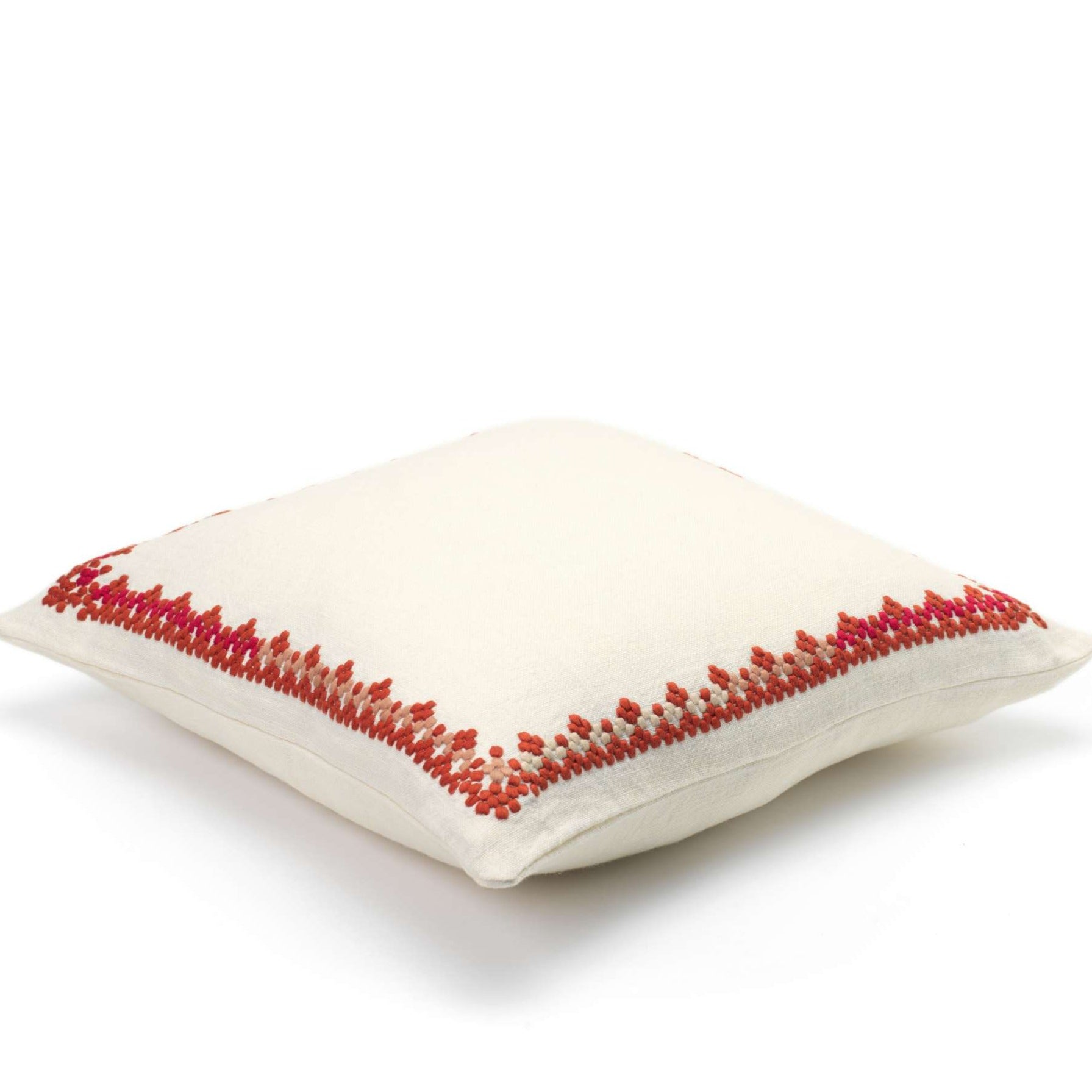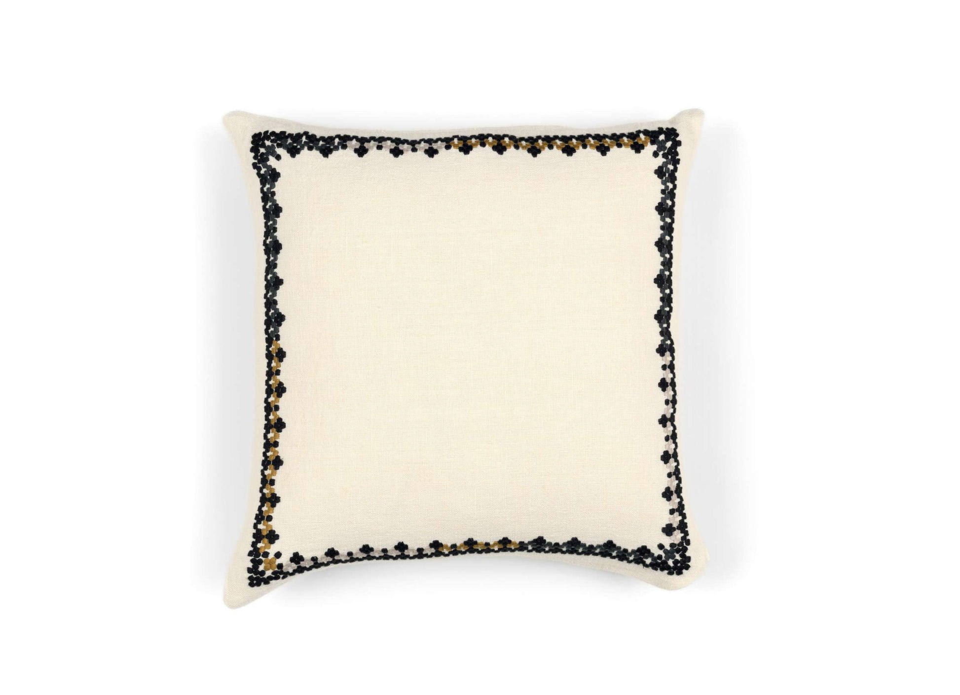 Almofada com moldura bordada a toda a volta. Fecho escondido.