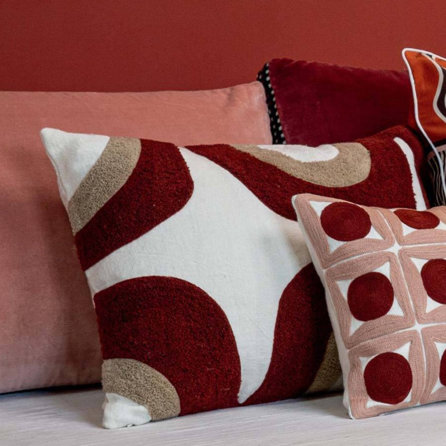 Almofada em linho com padrão bordado em relevo bouclé.