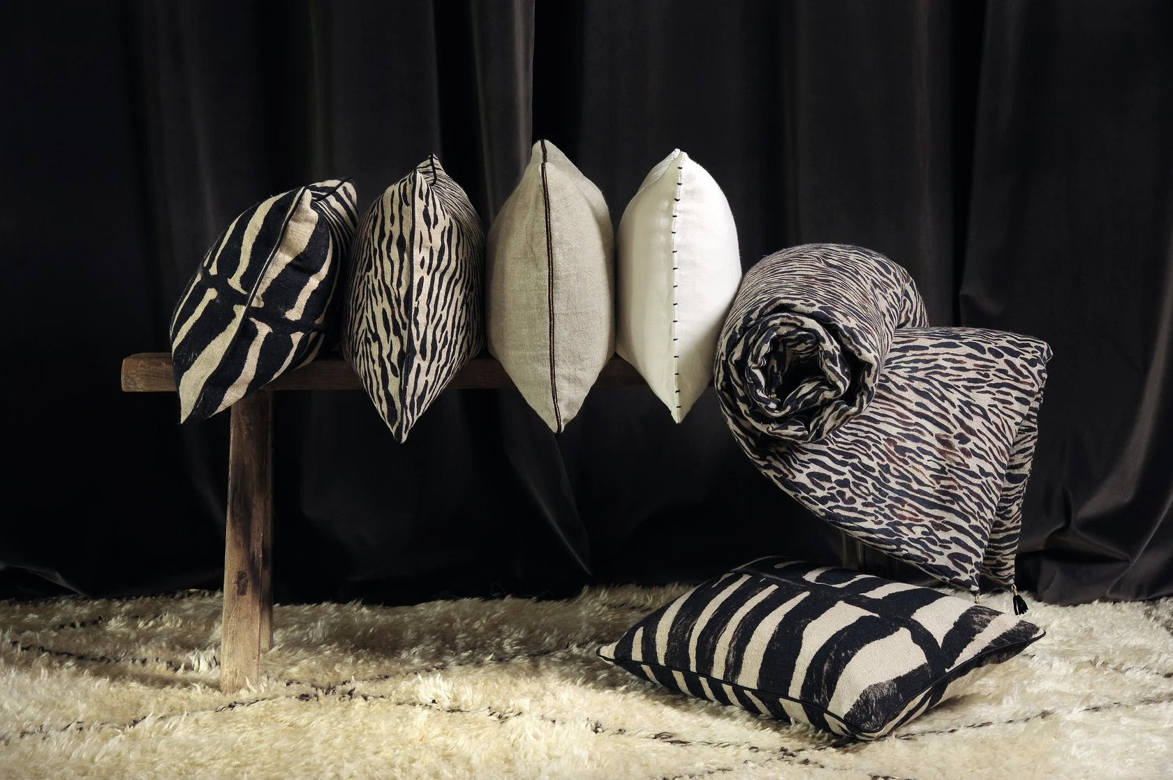 Almofada em linho com forro no interior em algodão e elegante padrão de zebra estampado, que adiciona um toque exótico a qualquer ambiente. Acabamento com borda em preto fosco e fecho escondido.