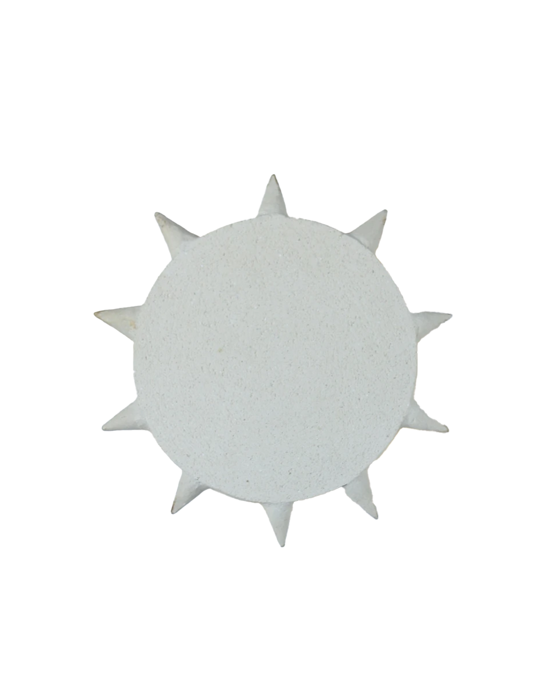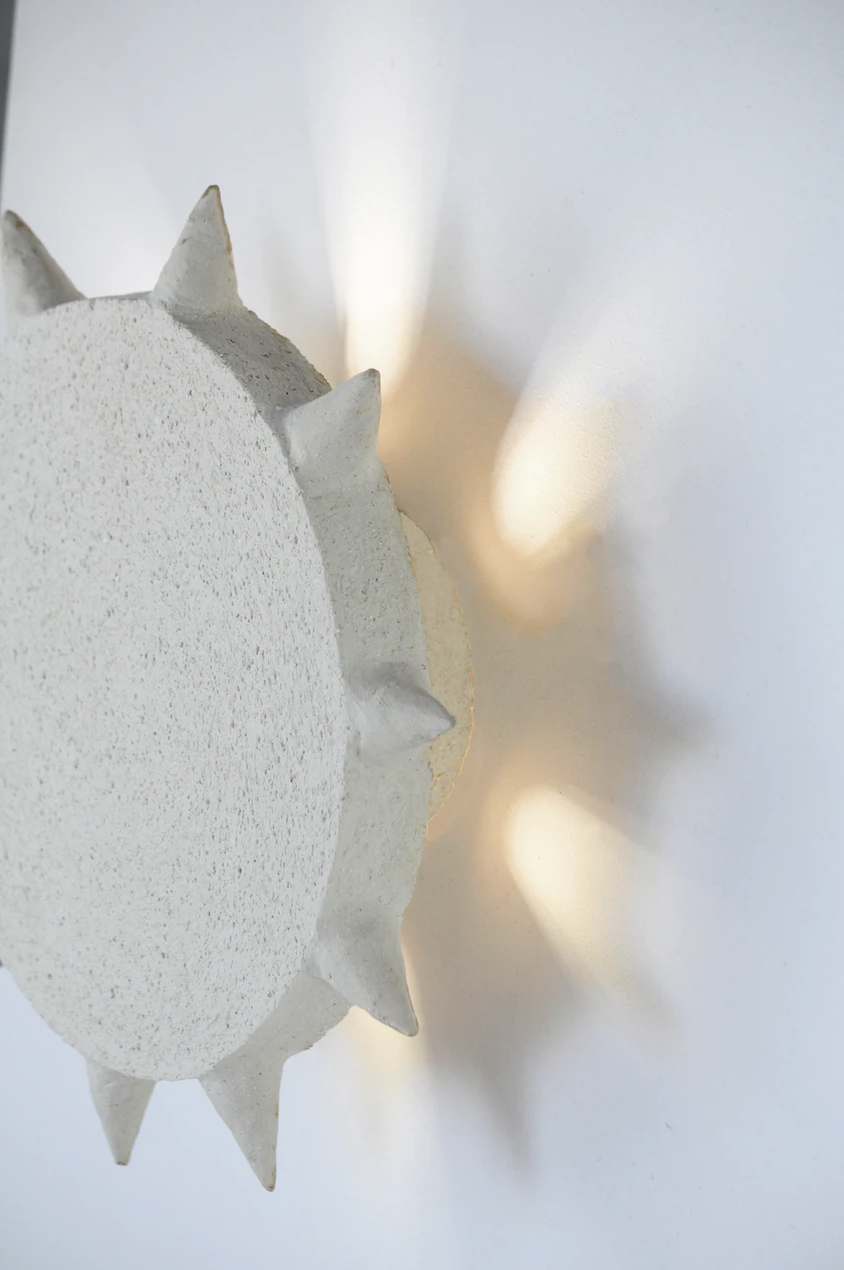 Aplique de parede produzido manualmente em grés. Peça da série Júpiter, numerada e assinada pelo artista Alan Louis. O processo que torna este objeto tão resistente como uma pedra, é porque vai ao forno mais que uma vez, em temperaturas entre os 800 e os 1400 graus. É através deste trabalho de escultura e montagem e nas diferentes queimas, que o objeto se revela. E são estes os parâmetros que tornam as curvas irregulares e imperfeitas, e evidenciam a sua singularidade, tornando o objeto único e exclusivo