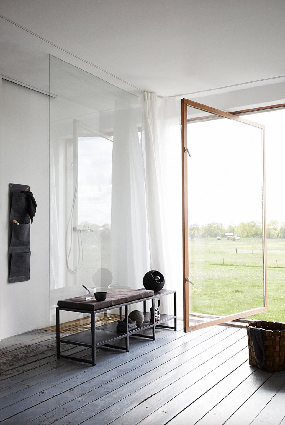 O banco Bronx é produzido numa combinação de dois materiais, a camurça e o ferro. Tem uma confortável almofada em camurça cor castanha que cobre 2/3 do assento e na parte de baixo tem uma prateleira muito prática que pode servir para colocar os sapatos ou colocar um cesto de vime onde poderá colocar chapéus, luvas, etc...