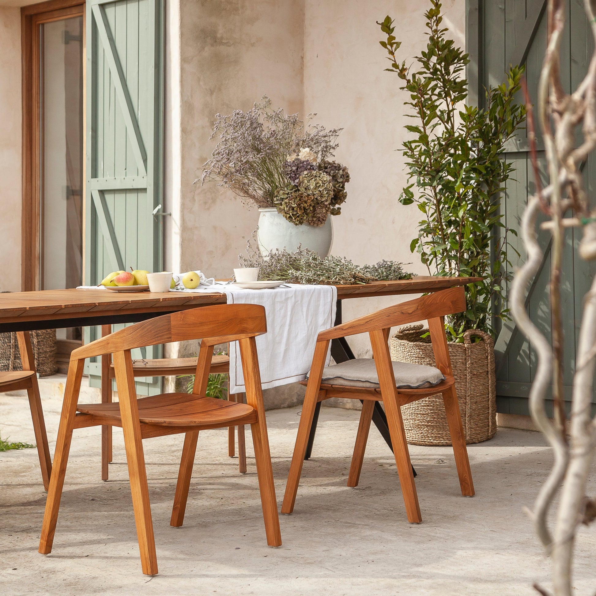 Cadeira com contornos muito suaves e simples, um assento firme e um encosto a meio das costas, com acabamento suave e ergonómico, onde a beleza e o conforto fazem parte de um mesmo objetivo: o seu bem-estar. Uma cadeira de madeira de teca natural recuperada feita à mão por artesãos especializados, comprometida com a sustentabilidade e com o meio ambiente, ideal para a mesa do quarto, da sala ou da cozinha.