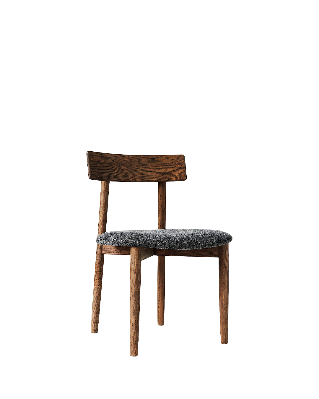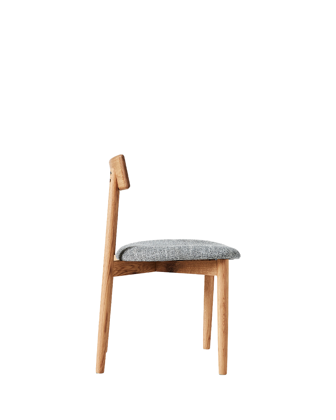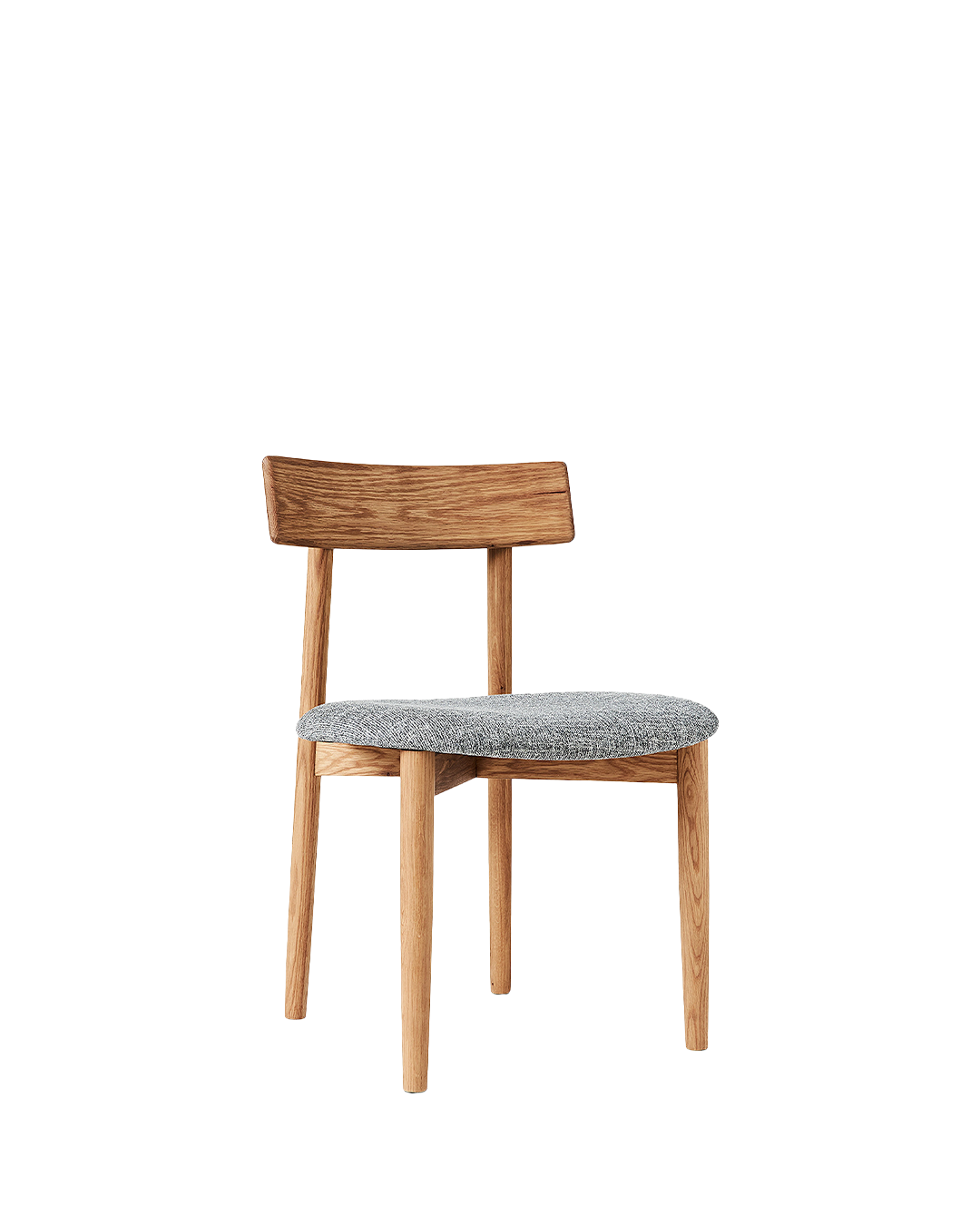 Tetra é uma cadeira de madeira muito confortável, com um encosto ergonómico e assento estofado em tecido texturado cinzento. A sua construção é simples com um assento largo, apoiado em pernas rústicas que destacam os belos tons da madeira. Disponível em dois tons de madeira e dois tons de estofo cinzento.