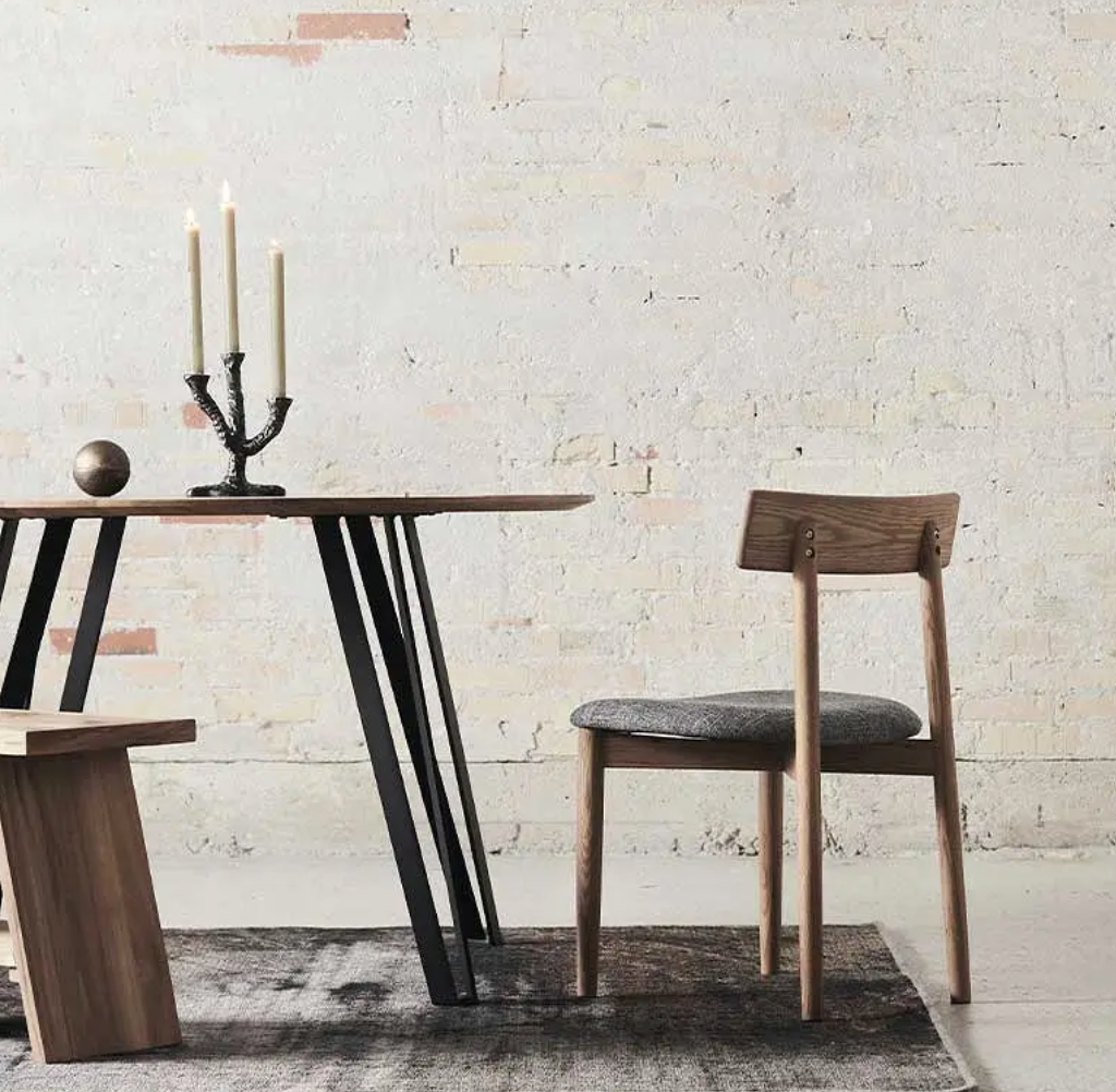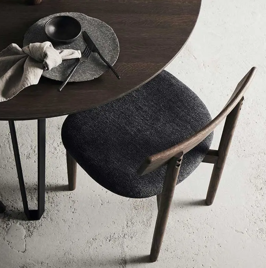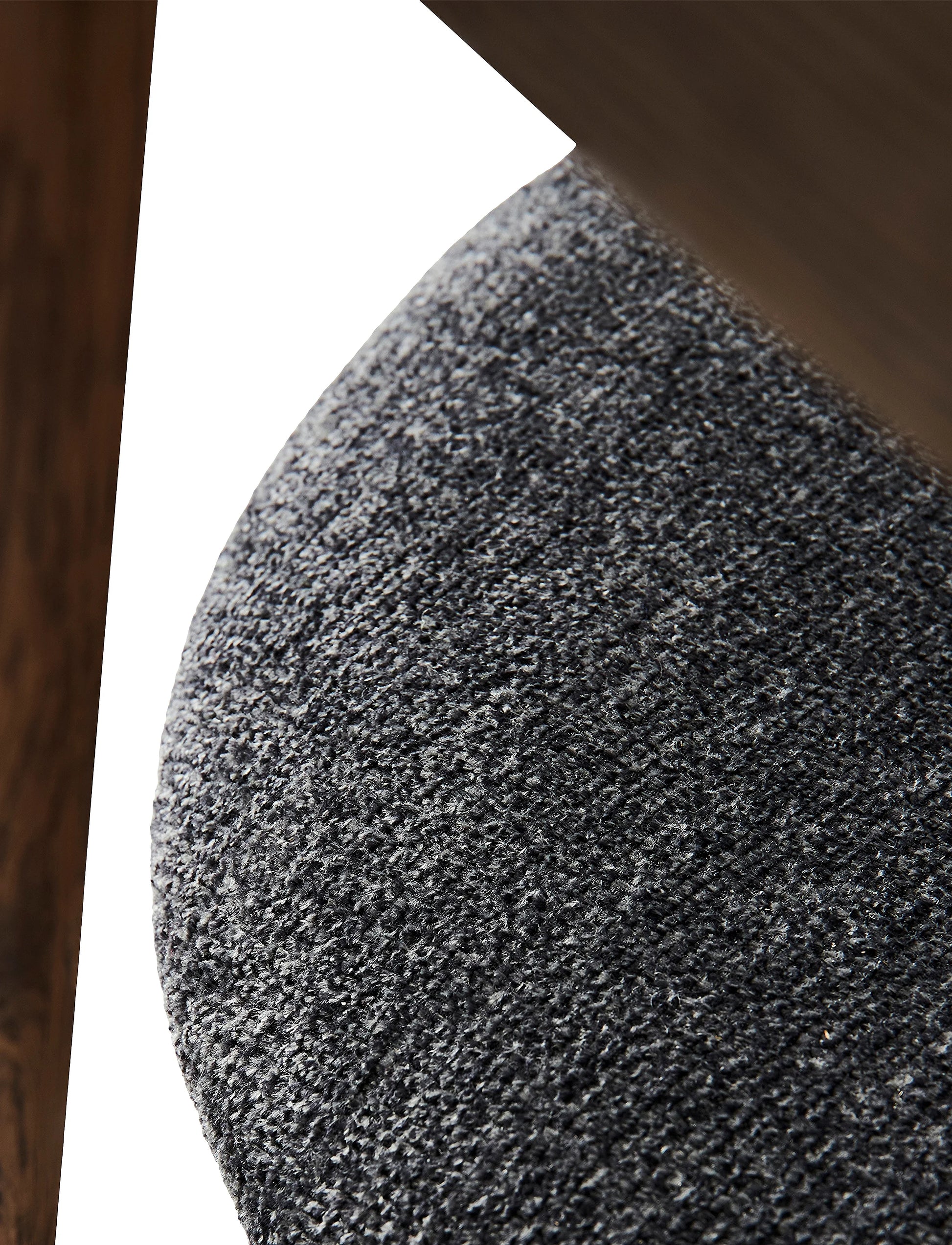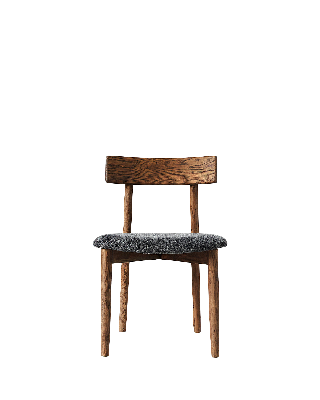 Tetra é uma cadeira de madeira muito confortável, com um encosto ergonómico e assento estofado em tecido texturado cinzento. A sua construção é simples com um assento largo, apoiado em pernas rústicas que destacam os belos tons da madeira. Disponível em dois tons de madeira e dois tons de estofo cinzento.