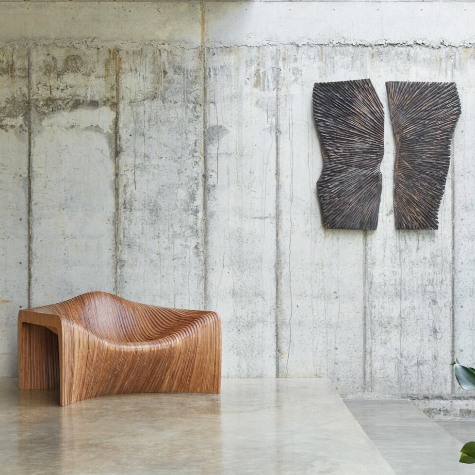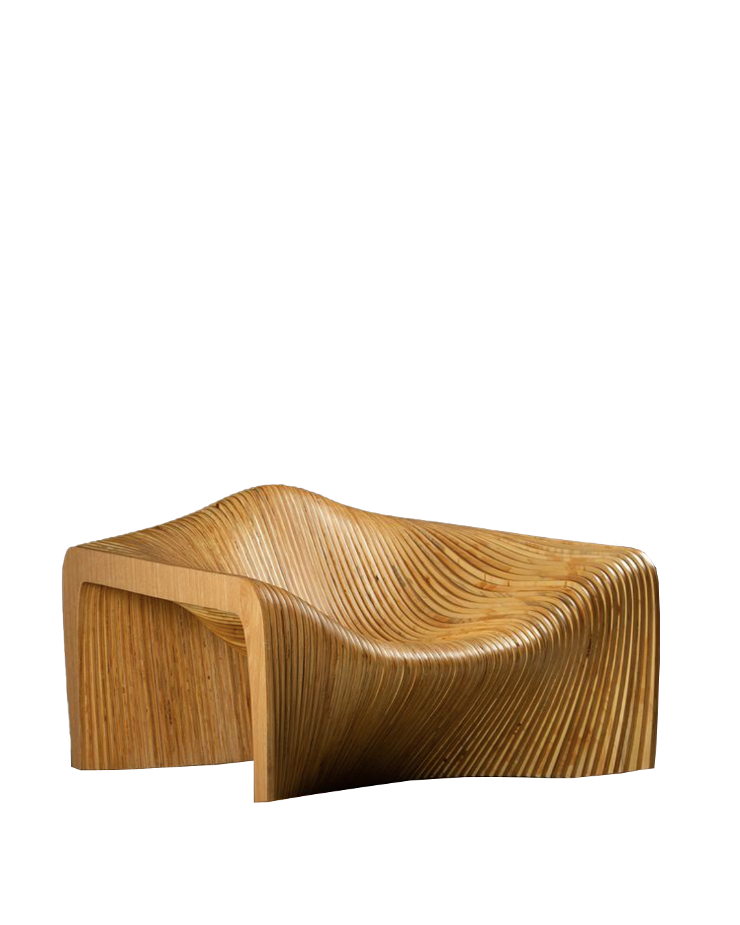 Pela sua forma escultórica podemos dizer que esta poltrona é uma verdadeira obra de arte, assinada por Andre Gurgel e Felipe Bezerra. O seu design inspirado no formato orgânico das dunas que circundam a região de Natal, de onde ambos os designers são naturais é produzida em madeira de Pinus Riga, uma madeira típica brasileira que possui subtis nuances de cores derivadas das areias da região.