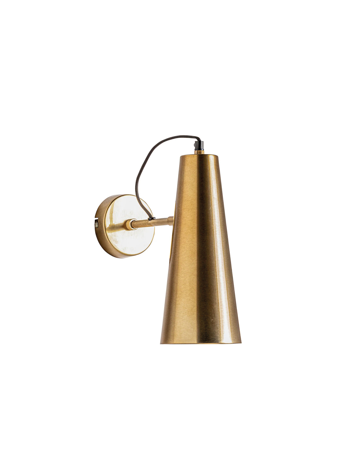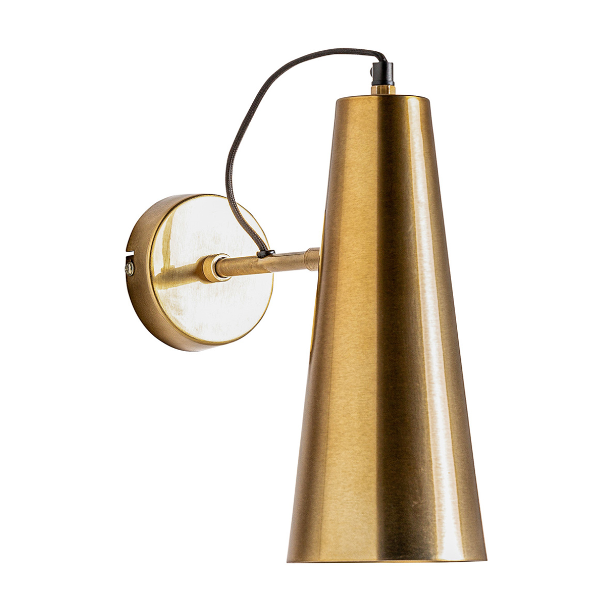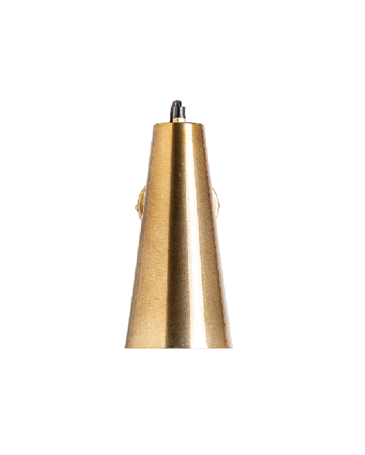 O candeeiro cónico de parede em latão combina elegância intemporal com funcionalidade, trazendo um toque sofisticado à decoração. O latão, com o seu acabamento quente e metálico, confere ao ambiente uma atmosfera acolhedora e refinada, enquanto o design em forma de cone direciona a luz de forma suave e precisa, ideal para criar pontos de destaque ou iluminar áreas de leitura.