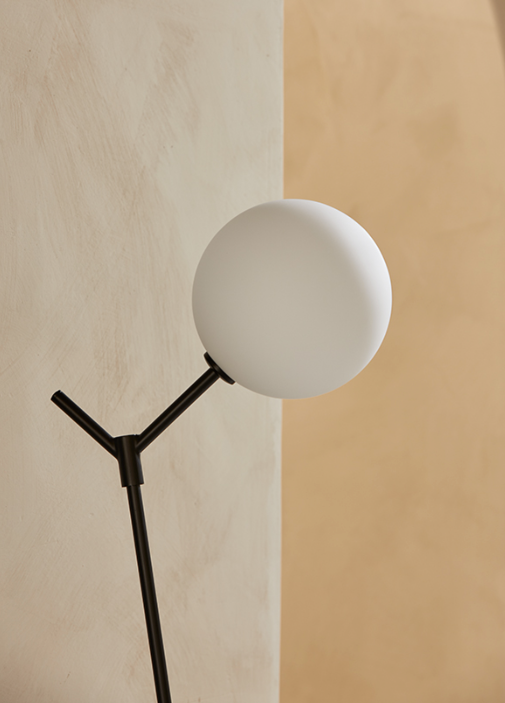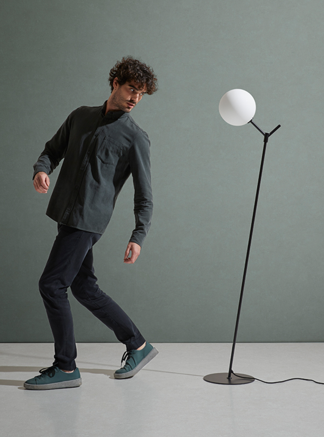 O candeeiro Tripod é composto por um tripé em metal preto com um abajur em tecido de algodão cor preta. É um candeeiro com uma silhueta marcante e que transmitirá uma luz bastante intimista.