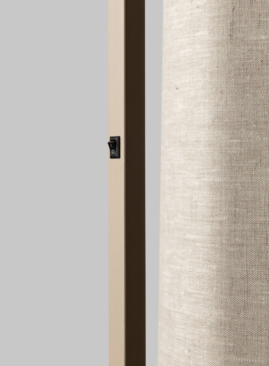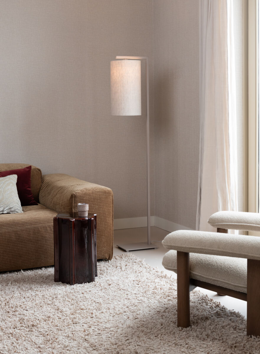 O candeeiro Boston com o seu grande abajur transmite uma atmosfera acolhedora. A base e a estrutura são em metal cor toupeira com interruptor localizado no próprio dispositivo. O abajur é em tecido de algodão e está disponível em 3 bonitas cores.