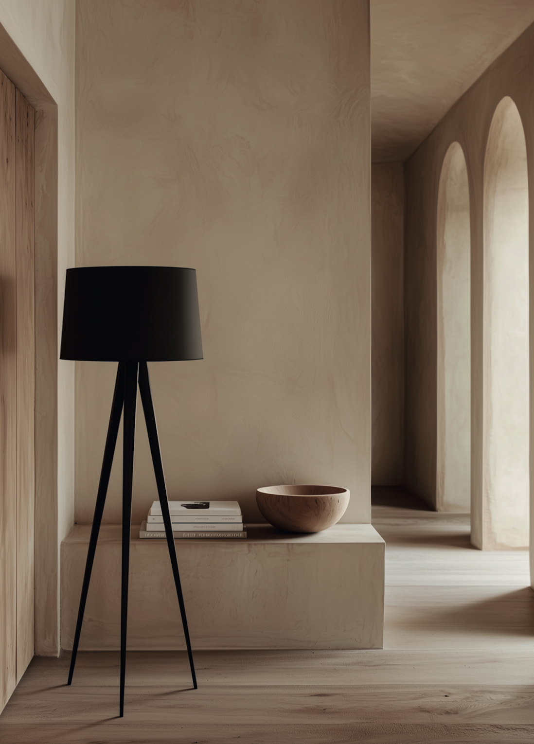 O candeeiro Tripod é composto por um tripé em metal preto com um abajur em tecido de algodão cor preta. É um candeeiro com uma silhueta marcante e que transmitirá uma luz bastante intimista.
