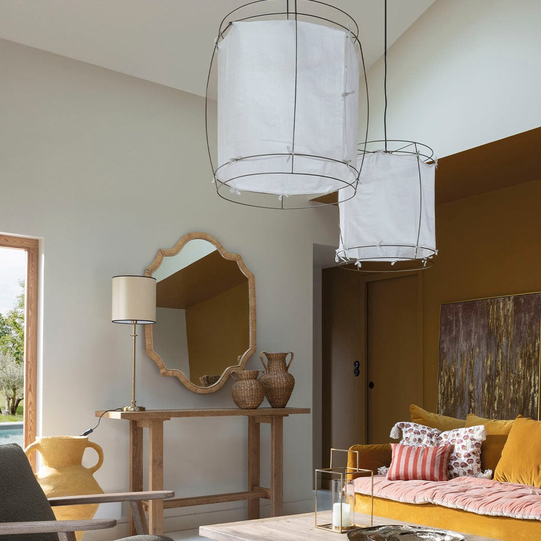 O candeeiro Jade, tem um ar rústico e sofisticado ao mesmo tempo pois é produzido numa combinação perfeita de dois materiais: Abajur de algodão que lhe confere um toque autêntico e uma estrutura em metal com acabamento em latão que lhe dá toque contemporâneo.