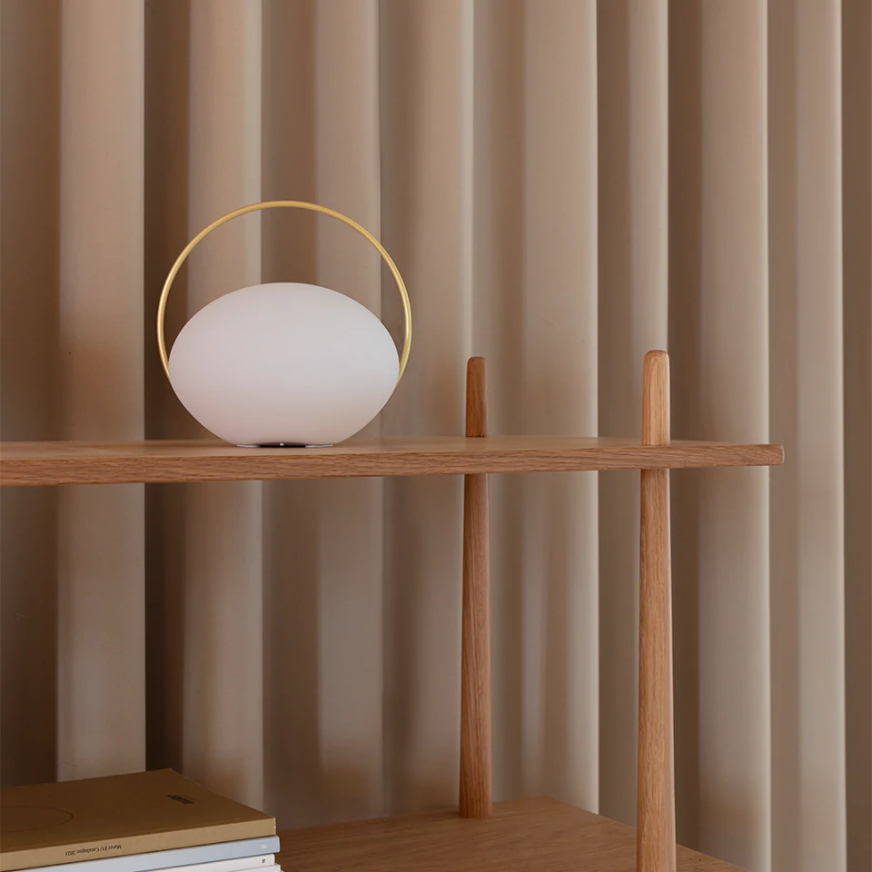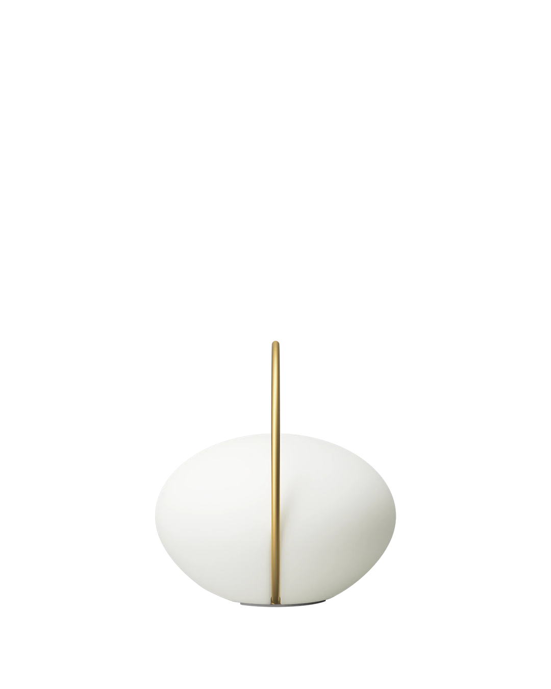 O design desta lanterna, é inspirado no movimento de rotação da Lua em torno da Terra e é produzida em fibra branca com pega em latão que lhe confere uma distinta elegância.