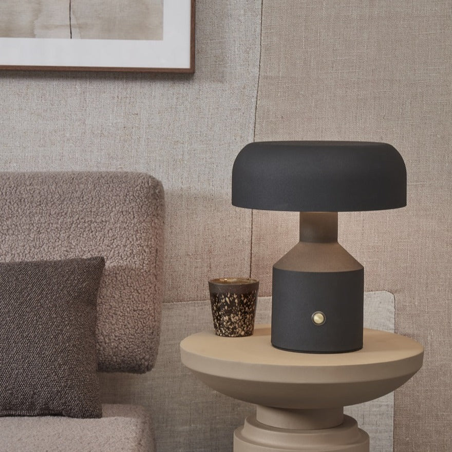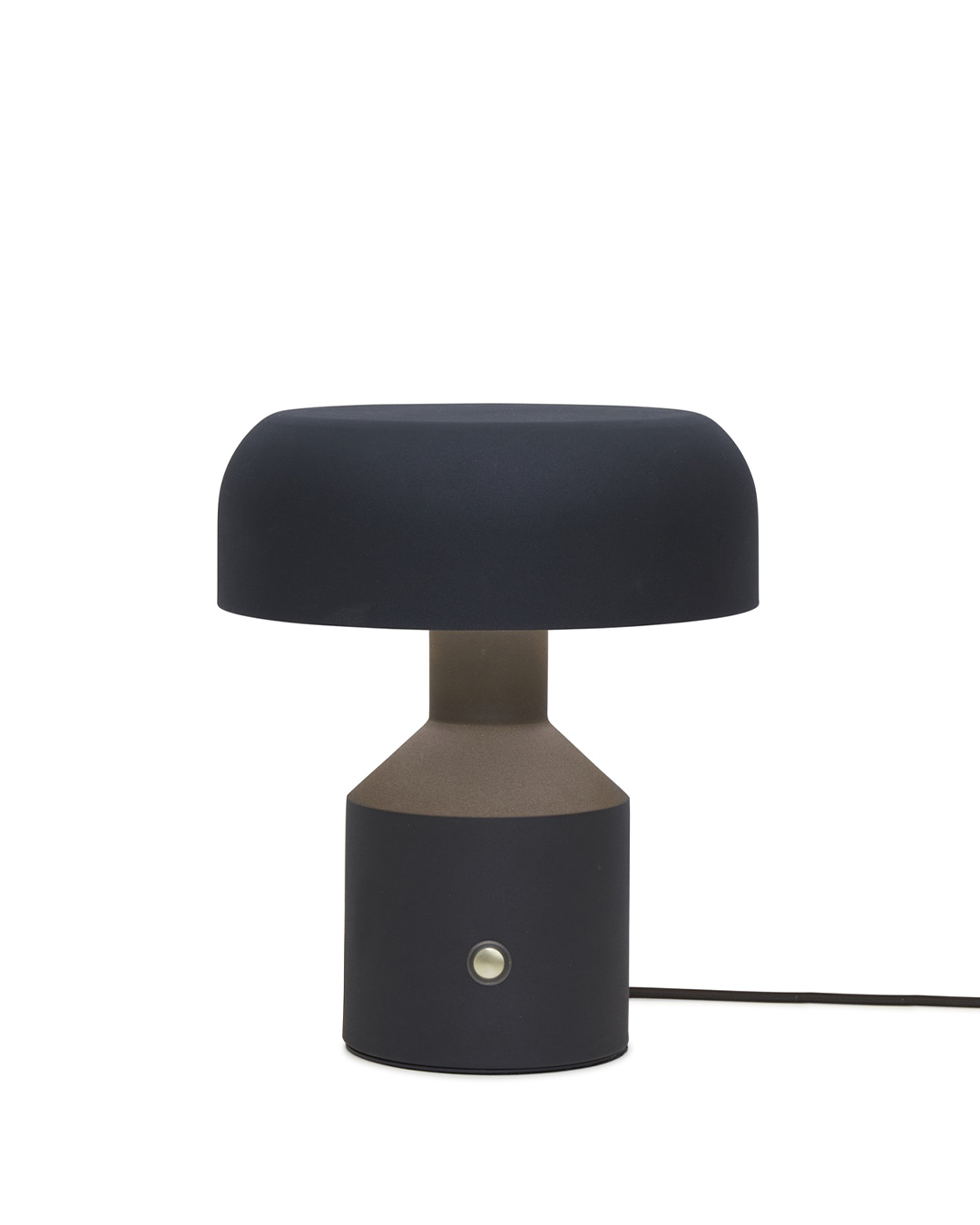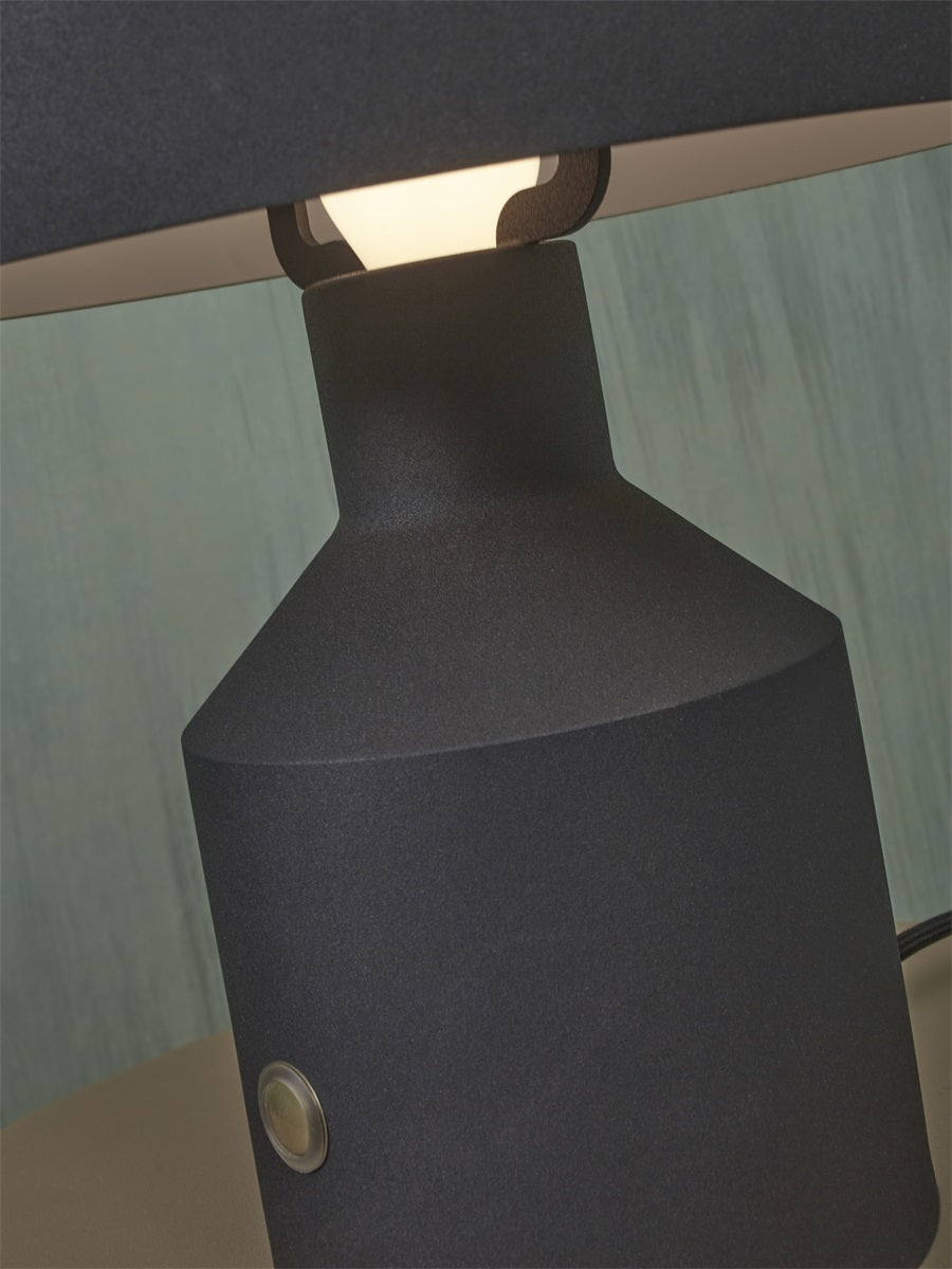 Candeeiro de mesa em metal, disponivel em 3 cores (preto, areia e terra).