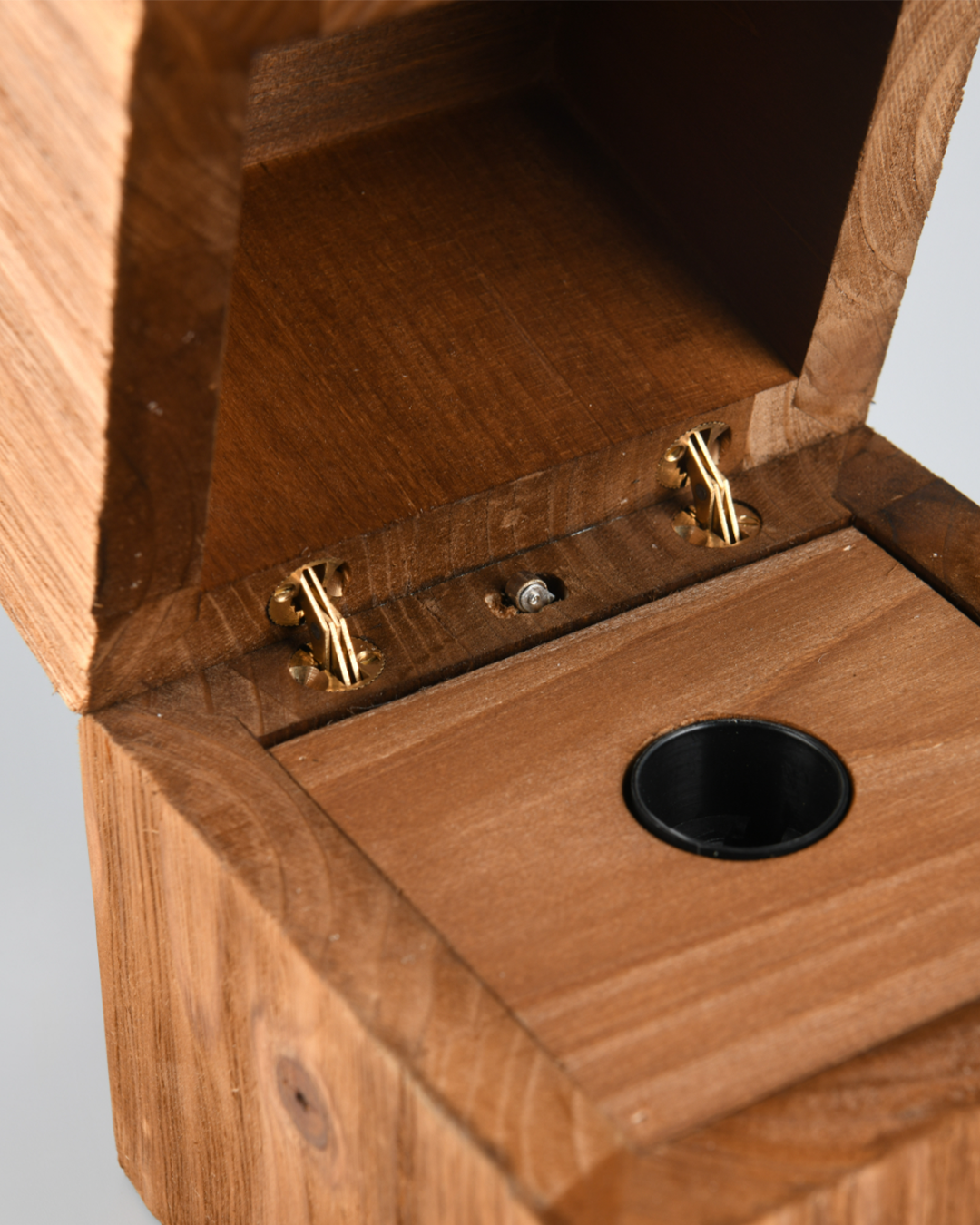 O candeeiro de mesa Treasure é uma peça invulgar e surpreendente, que lembra uma caixa de Tesouro que se pode apresentar aberta ou fechada. Por ser um candeeiro em madeira, com uma lâmpada de filamentos amarelos, transmite um luz quente e acolhedora e conta com tecnologia LED, que se caracteriza pela elevada qualidade de luz e eficiência energética.