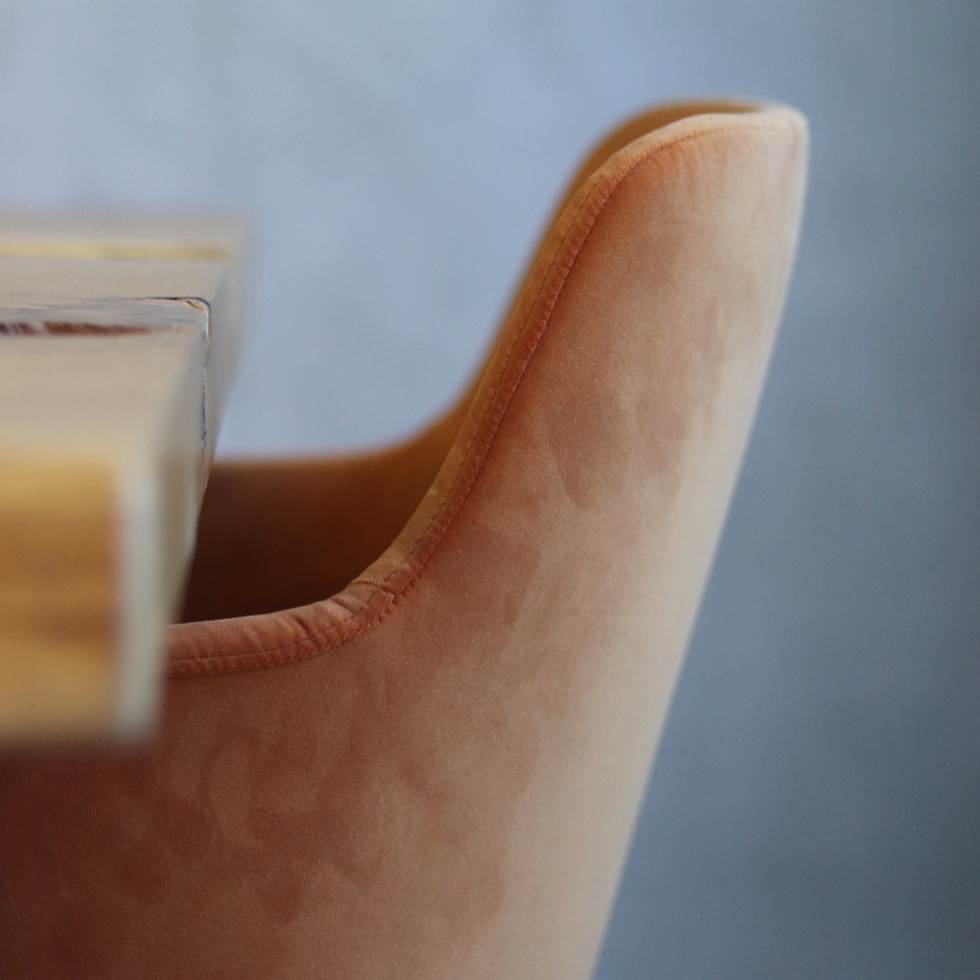 Este modelo de cadeira pode ser produzido sob encomenda, num outro tecido, cor e acabamento de madeira.