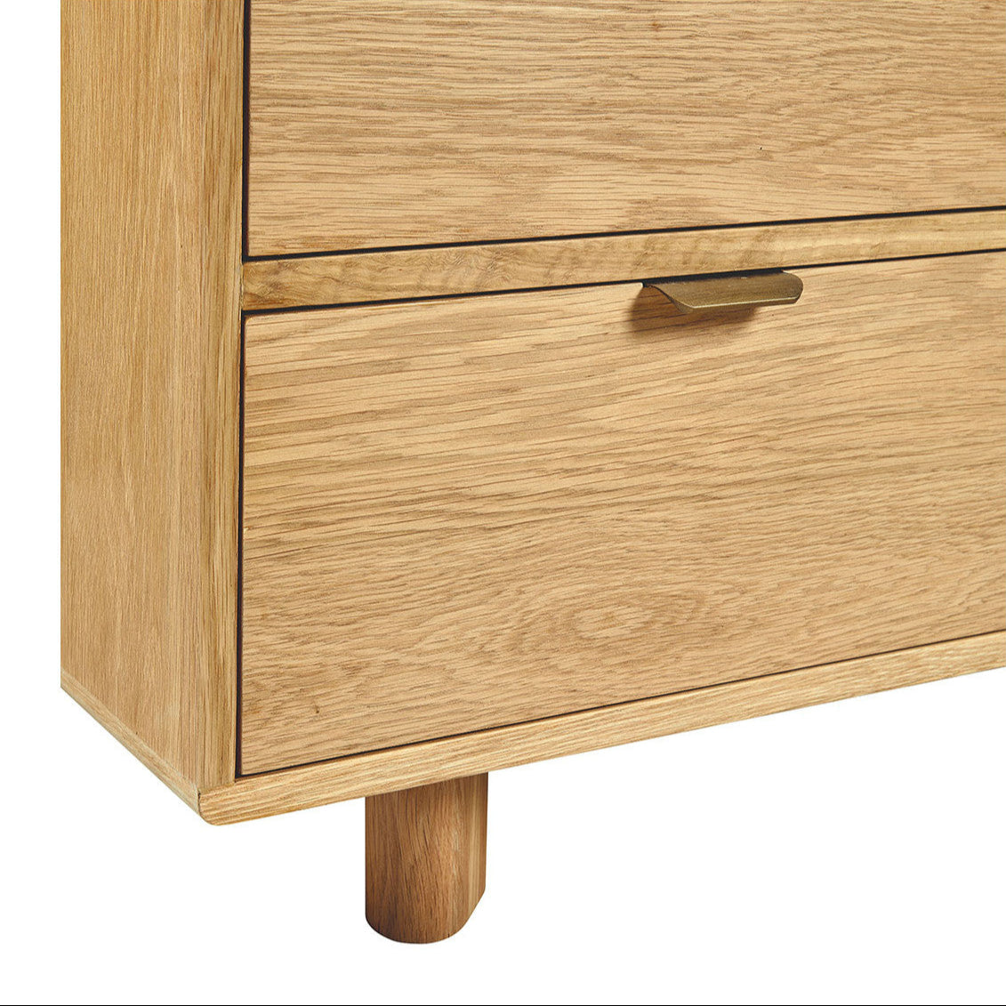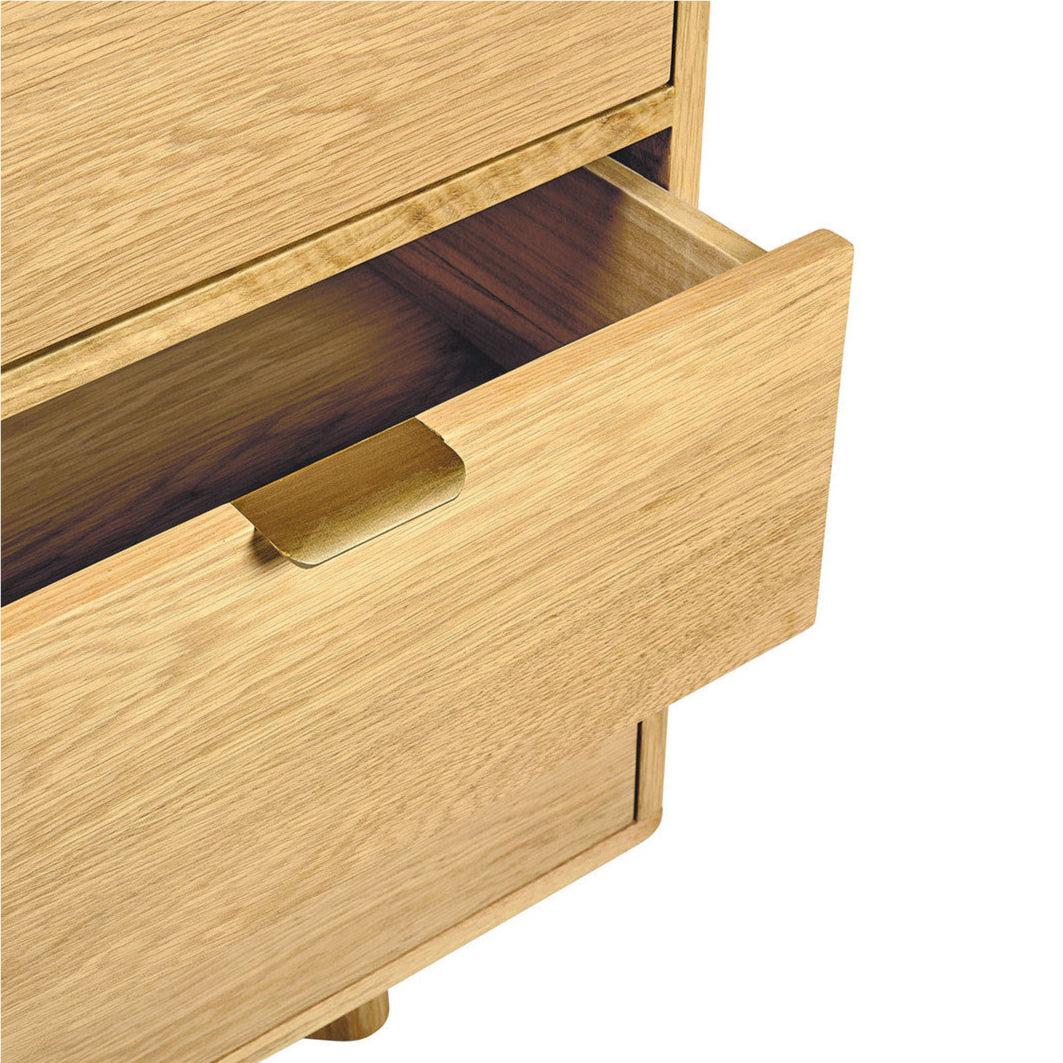 A cómoda Simona em carvalho, tem ótima capacidade de arrumação e tem mesmo tudo para agradar! Transmite equilíbrio e destaca-se pela sobriedade da sua estrutura em madeira com acabamento arredondado, e puxadores em ouro envelhecido que combina com todos os estilos de ambiente.