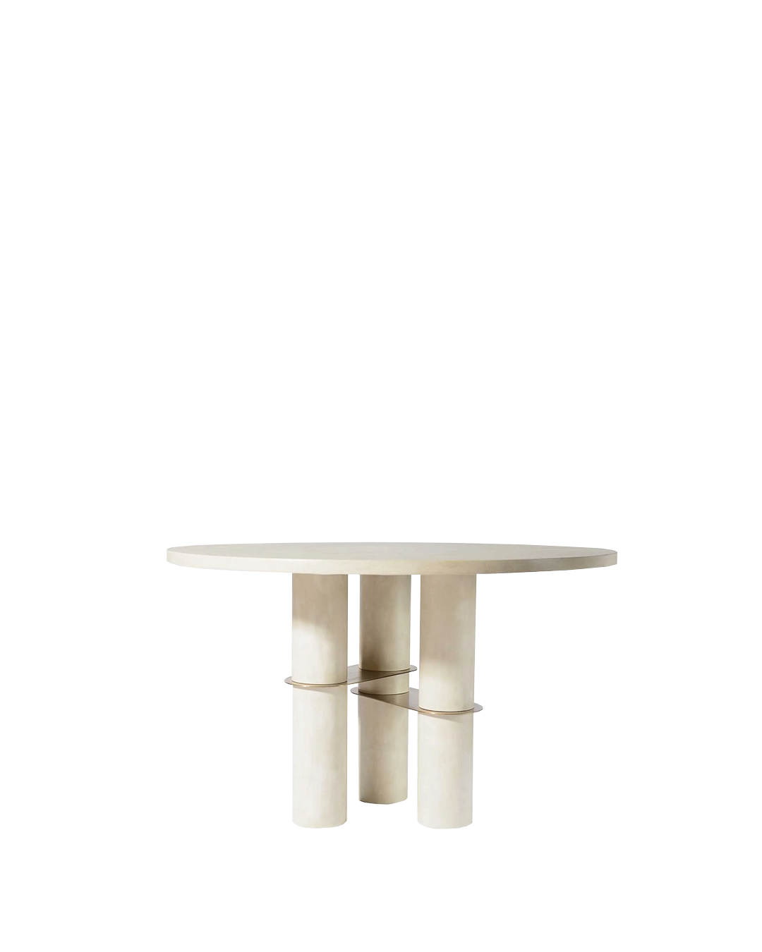 A mesa Padda é aquele tipo de peça que dificilmente passará despercebida. A sua estrutura sólida com três pés cilíndricos unidos por peças em inox escovado, fará desta mesa o centro das atenções em qualquer zona de refeição. Poderá ser produzida totalmente em microcimento (cor arena) ou totalmente em madeira de carvalho com acabamento preto. Distinta, sem dúvida!