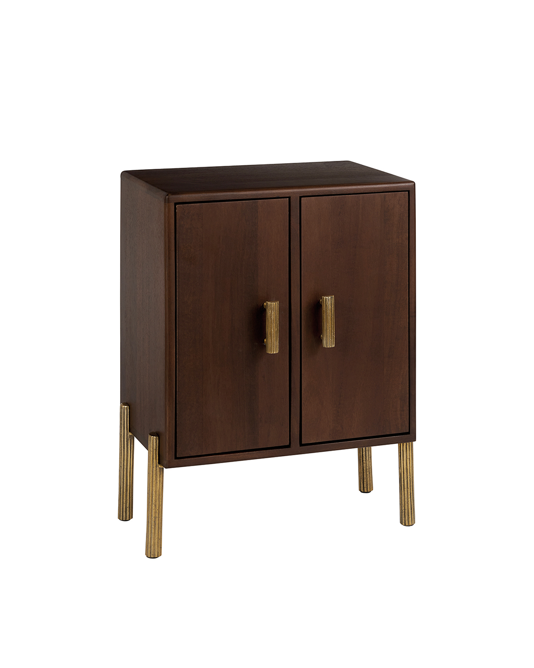 A mesa de cabeceira Victor, confere um toque retro ao seu quarto. Deixe-se seduzir pelas seus cantos arredondados e pelos detalhes dourados de delicado acabamento em latão. No interior tem uma prateleira fixa.