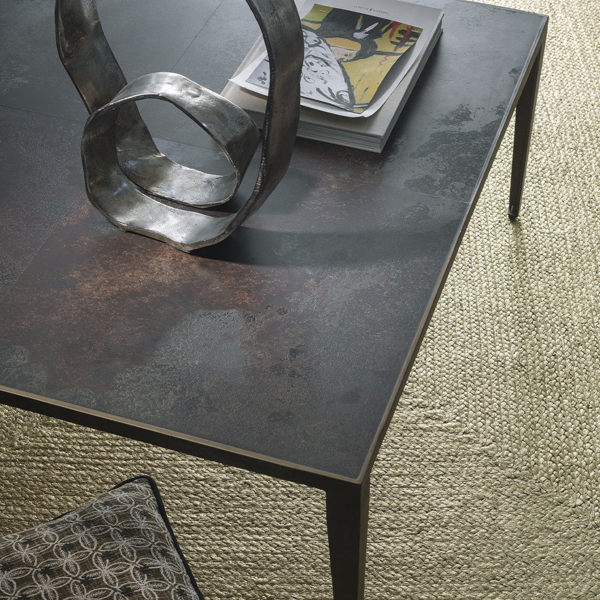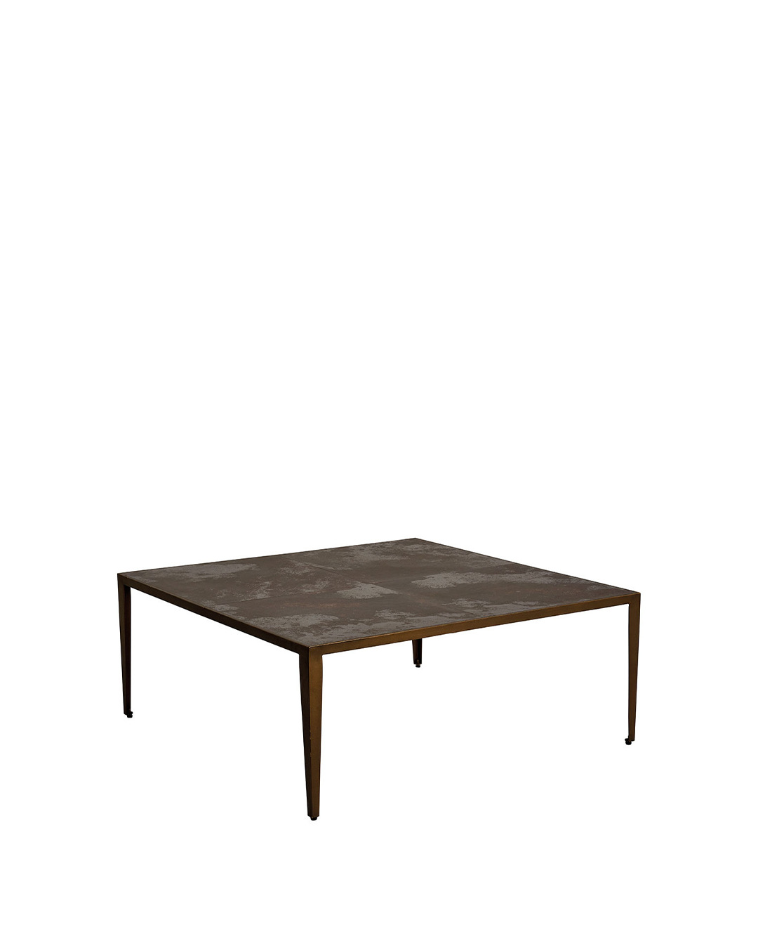 A sala ganha uma dimensão totalmente nova com esta elegante mesa de centro Giulia. Tampo fabricado em cerâmica italiana que reproduz um efeito de metal oxidado, e elegantes pés em acabamento latão escovado. Esta peça de decoração irá seduzir pelas suas linhas sóbrias.