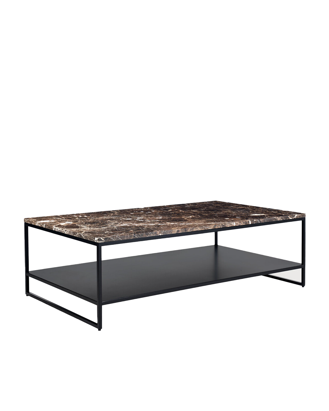 Esta mesa de centro de linhas simples traz um grau de discreta classe a qualquer ambiente. A sua moderna estrutura de metal e o tampo em mármore polido naturalmente escuro, torna esta peça central em todos os sentidos da palavra. A mistura perfeita entre o contemporâneo e o luxo. Design de Djordje Cukanovic.