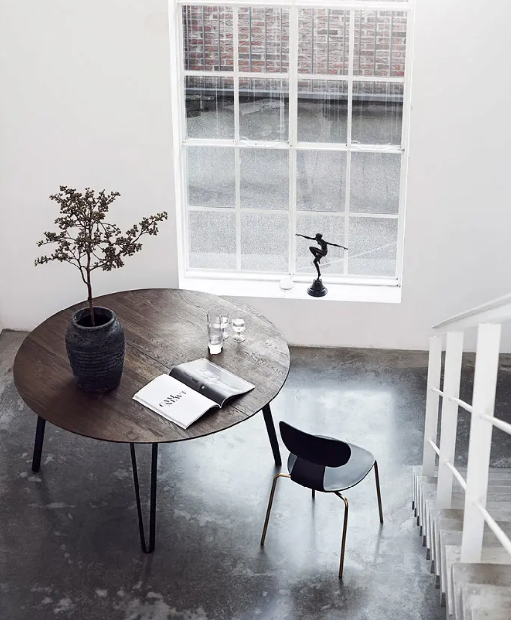 A mesa redonda de carvalho Space é feita para 8 pessoas, mas pode ser estendida a 10 pessoas com 1 folha de extensão extra que pode ser adquirida à parte. Produzida em carvalho com três acabamentos: Natural e Smoked e Black com pés em ferro preto mate. Uma mesa de jantar redonda tem muitas vantagens, pois ocupa menos espaço do que uma mesa de jantar retangular. Além disso, uma mesa redonda cria mais aconchego quando os convidados estão reunidos ao redor dela, pois todos podem conversar e ter contato visual.