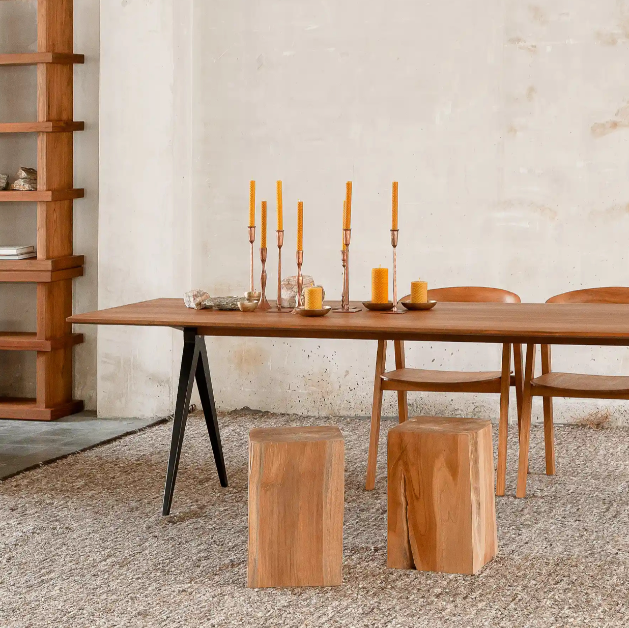 Mesa de Jantar Retangular em Teca e Ferro Liku
