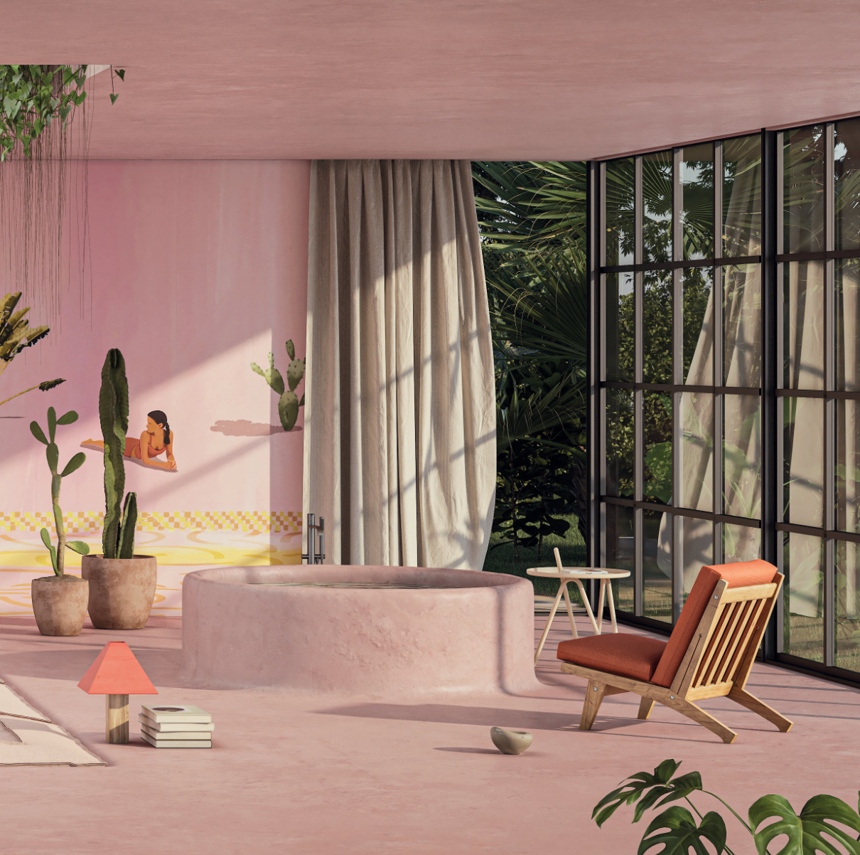 Imagine um mural que conta uma história sem fim... Momentos únicos de deleite em praias com floresta. Imagine algo que se estende por toda a sala como os antigos frescos de outrora que cobriam paredes inteiras. Este mural pertence à coleção 360º.