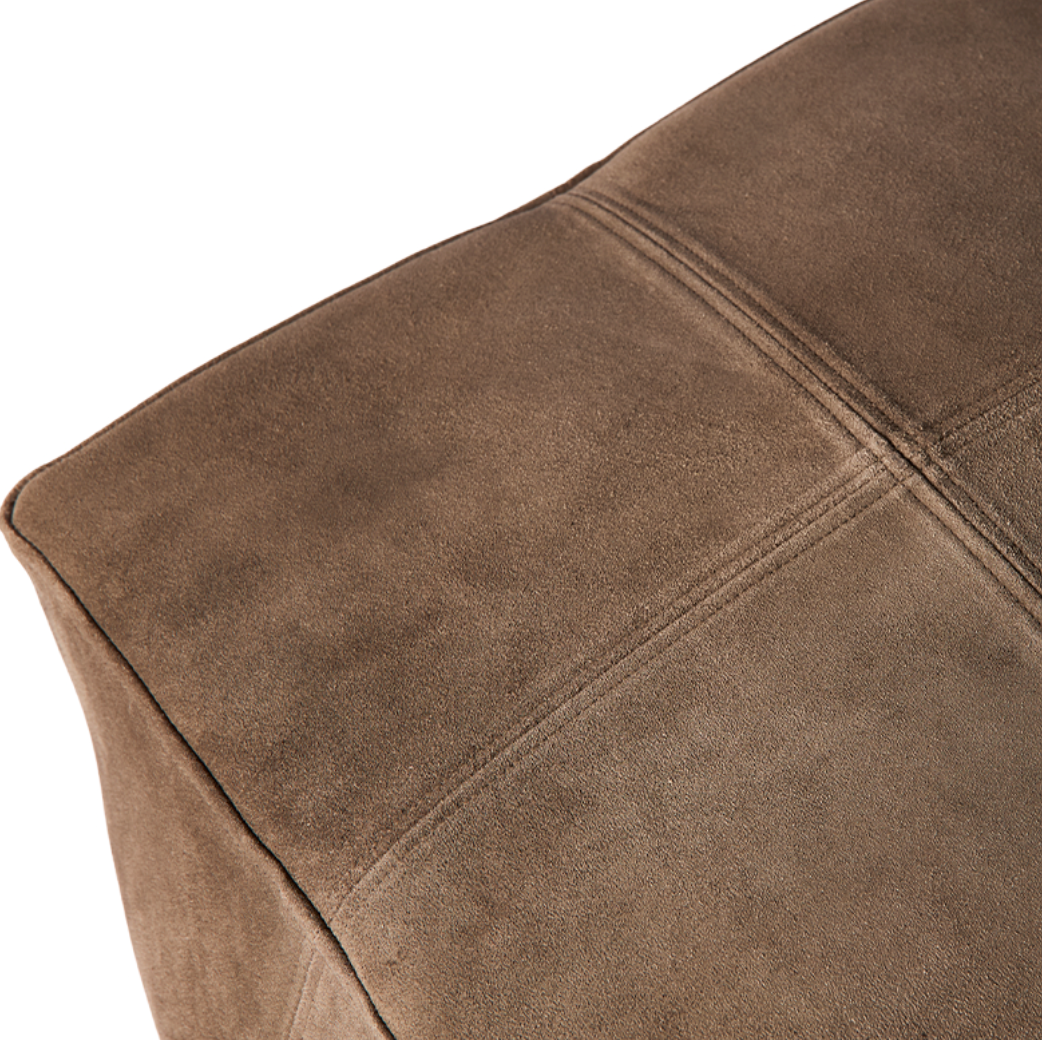 O moderno e funcional pufe Bronx é feito de camurça durável, com belos detalhes de costura que dão ao pufe uma aparência crua e exclusiva. A camurça natural fornece uma textura maravilhosa e um tom quente de cor natural.