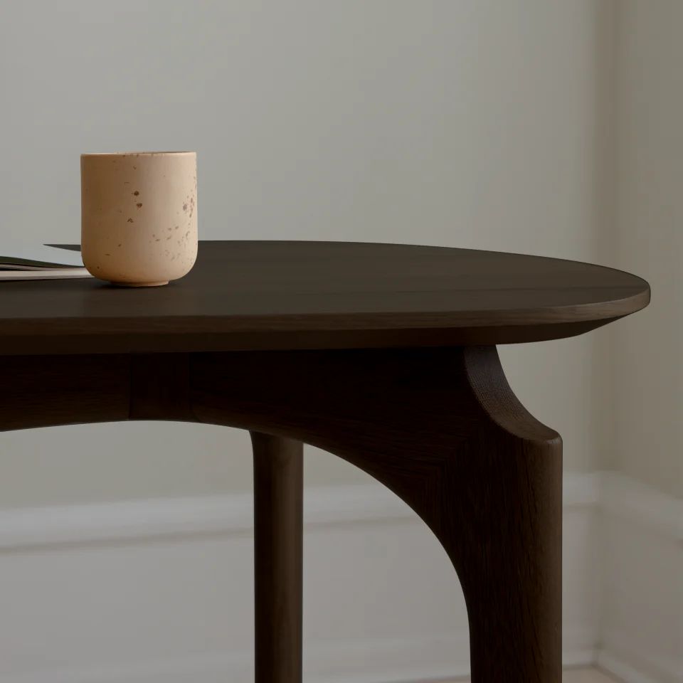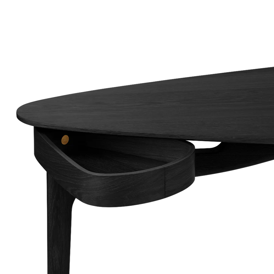 Produzida em folha de carvalho, a secretária Duende de tampo triangular vai além da estética para criar um espaço de trabalho que se conecta com a essência da criatividade. Coloque-a no canto do seu quarto ou sala num local subtil, onde se possa concentrar a trabalhar em casa, ou no meio do seu escritório, dando vida às suas curvas mágicas. A mesa possui uma gaveta que desliza suavemente por baixo do tampo da mesa e está disponível em três acabamentos de madeira.