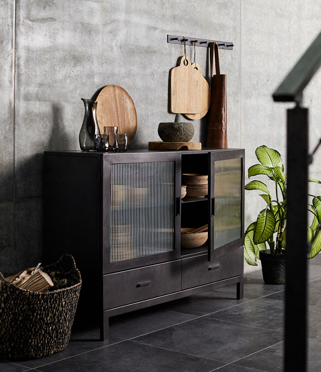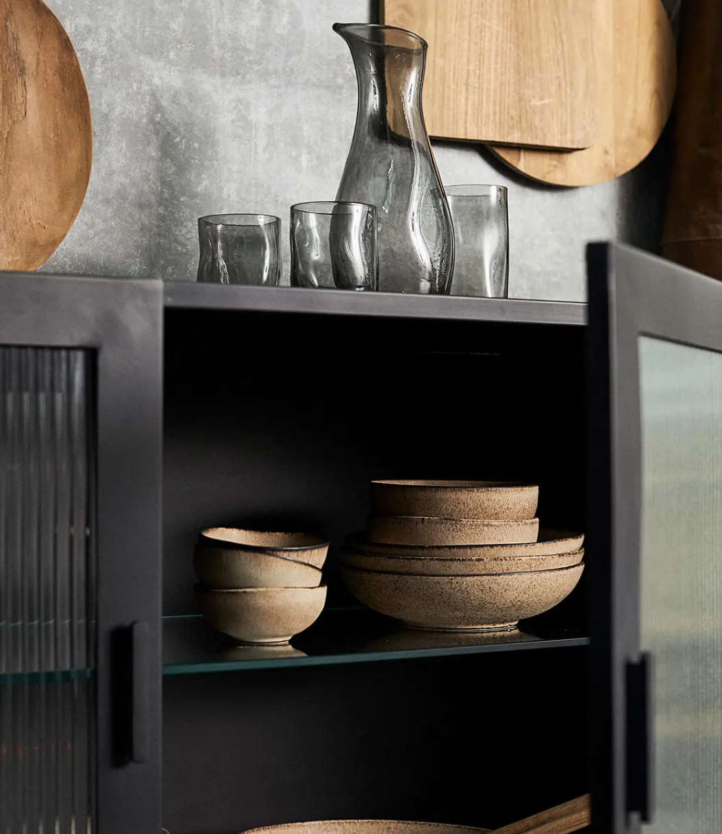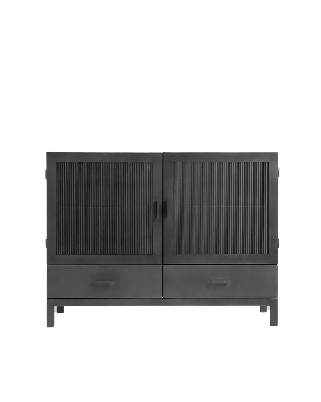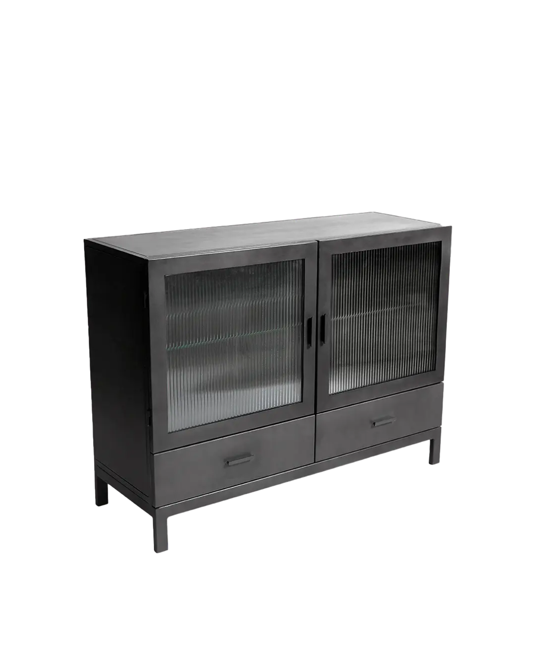 O armário Dallas, permite armazenar peças de forma refinada devido ao vidro ondulado nas portas da frente que lhe confere um ótimo efeito. As gavetas na parte inferior do armário permitem guardar peças menores de forma bastante organizada. O armário Dallas é perfeito para usar na sua cozinha, corredor ou sala de estar. O armário tem uma prateleira no interior em vidro e as portas fecham com ímans. Não se recomenda usar este armário na casa de banho.