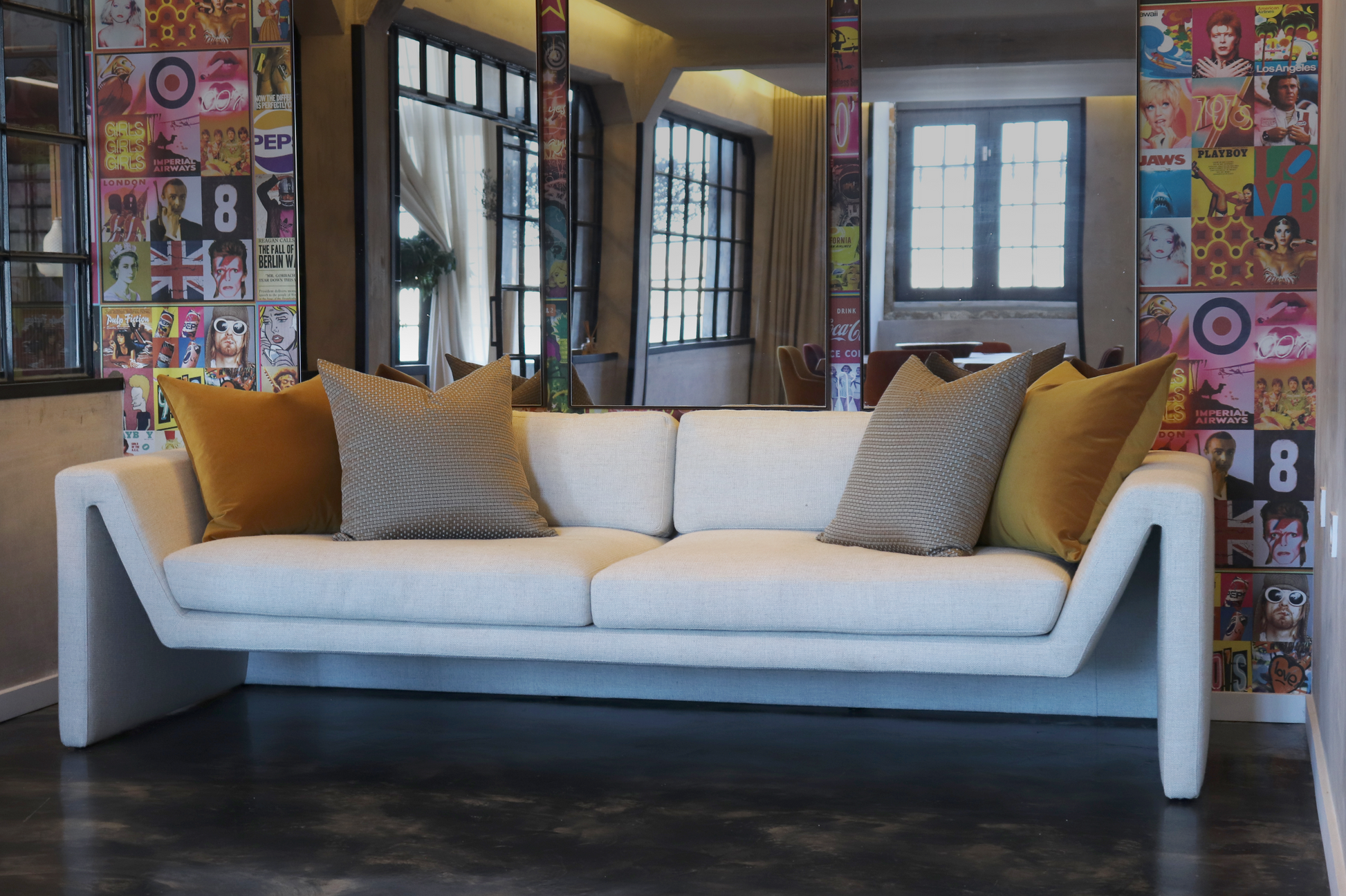 Este modelo de sofá também pode ser produzido sob encomenda, com outro tecido e acabamento à escolha.