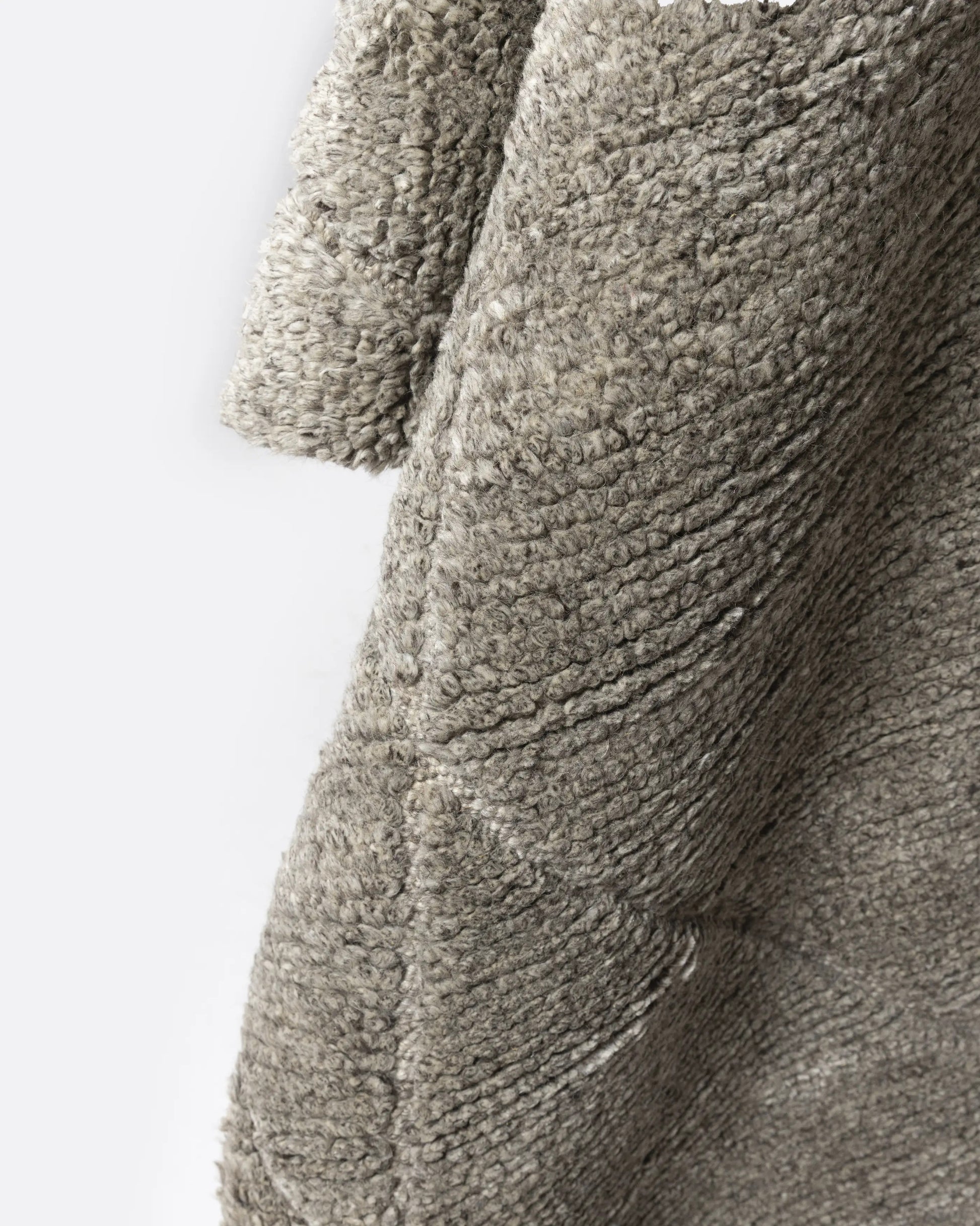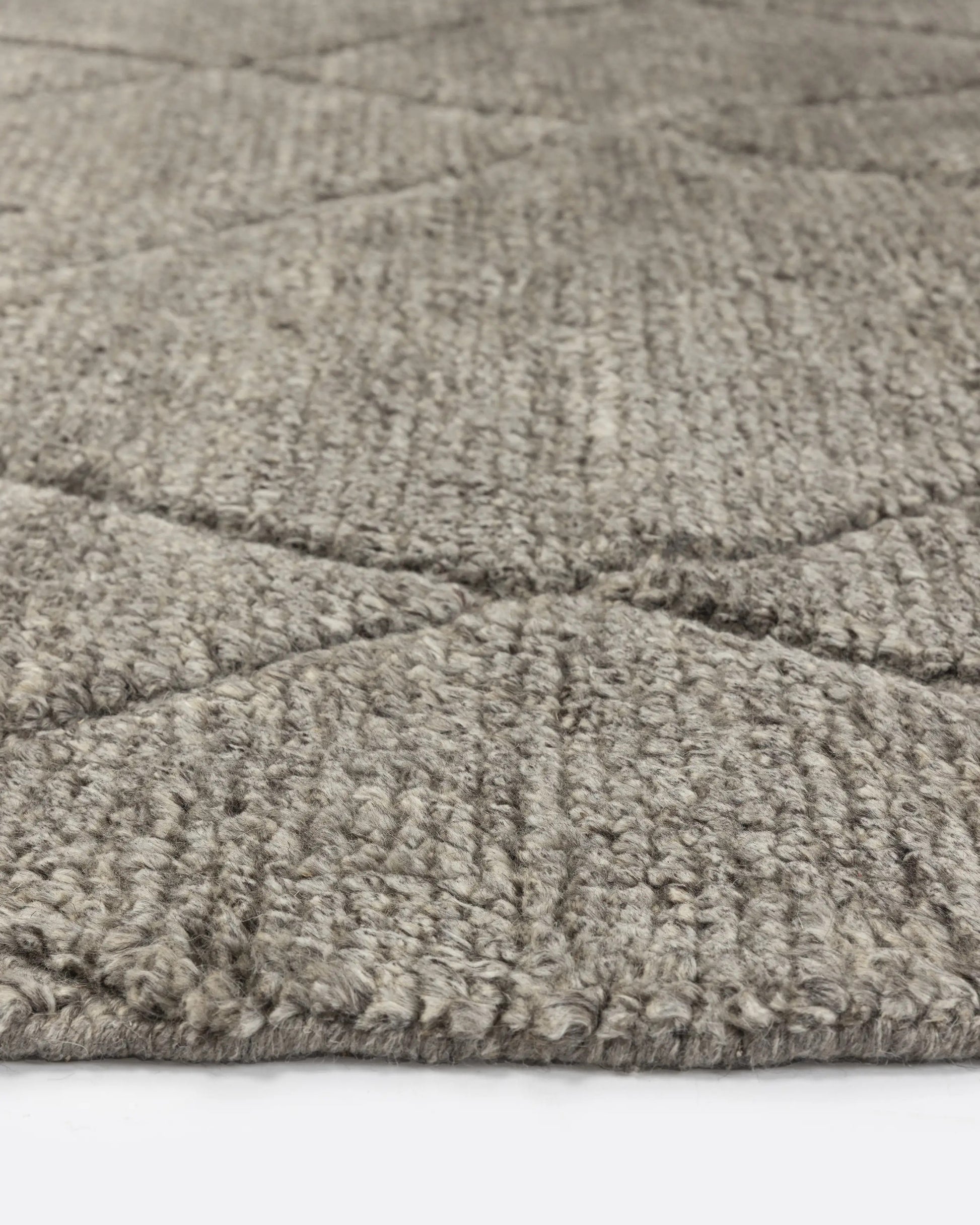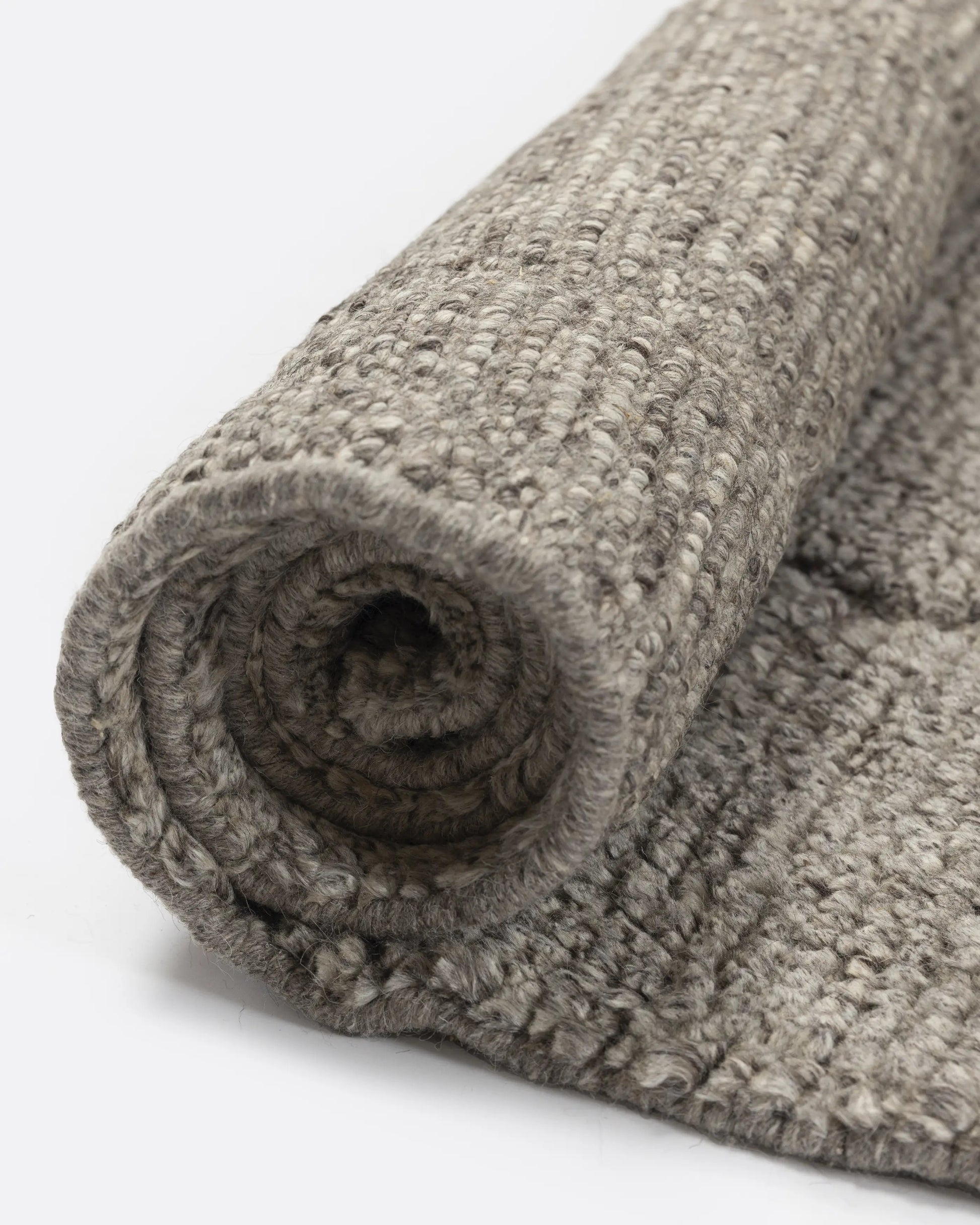 Tapete Ndano, tecido em lã 100% natural, em pelo com trama plana e nós feitos à mão. Um magnífico tapete retangular cinza, ideal para adicionar aconchego a salas de estar, salas de jantar e quartos. As propriedades naturais da lã tornam este tapete resistente e acolhedor. Disponível em dois tamanhos.