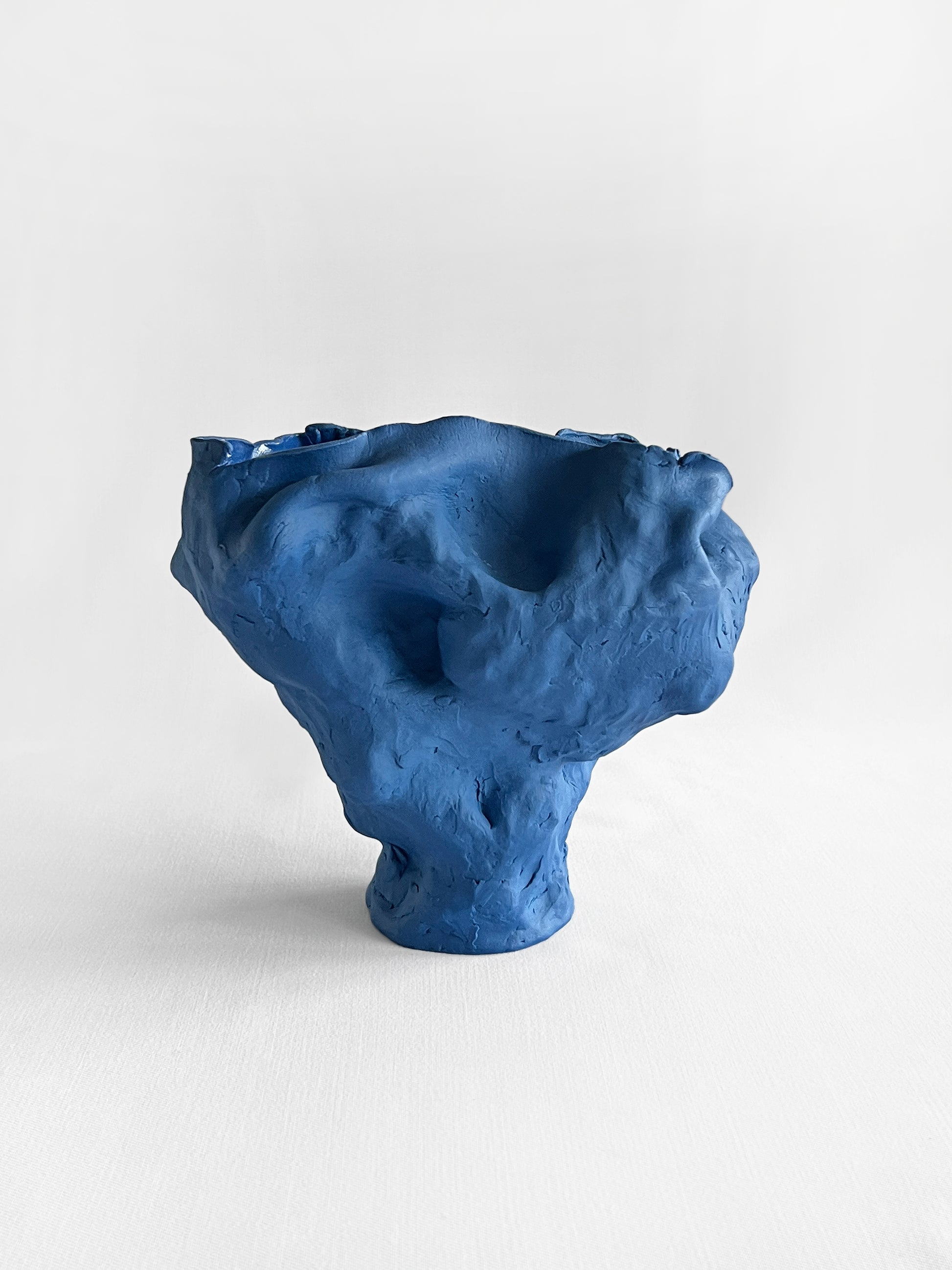Taça em cerâmica produzida manualmente de forma irregular e orgânica, de grande caracter decorativo. Pode ser usada para colocar alimentos, pois é vidrada por dentro.